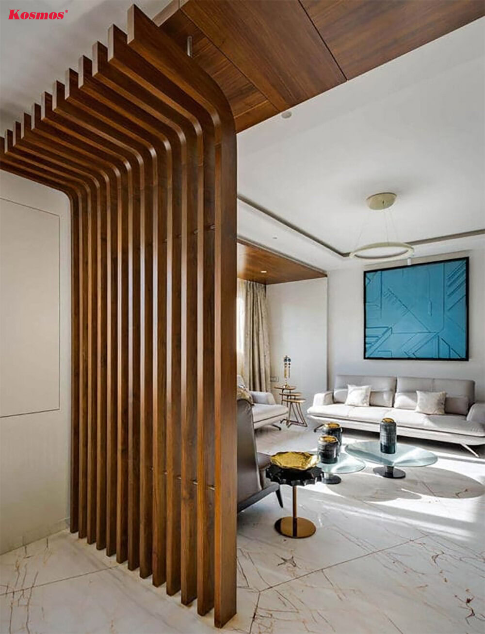 - Phù hợp với nhiều không gian khác nhau: Tính linh hoạt của thanh lam gỗ cho phép ứng dụng đa dạng trong các phong cách thiết kế từ hiện đại tối giản đến cổ điển sang trọng. Thanh lam gỗ còn có khả năng phân vùng không gian một cách mềm mại mà không tạo cảm giác ngăn cách hoàn toàn, phù hợp với xu hướng thiết kế không gian mở hiện đại.