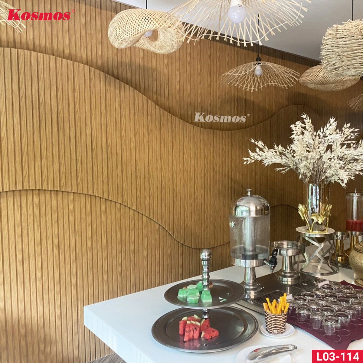 Chúng đáp ứng tốt nhu cầu trang trí không gian phá cách, thể hiện được tính cách của gia chủ và tạo nét đẹp độc đáo, sang trọng,… Cùng Kosmos xem qua 1.001+ mẫu công trình thực tế của tấm lam sóng Hàn Quốc ốp tường, ốp trần này ngay bên dưới nhé!