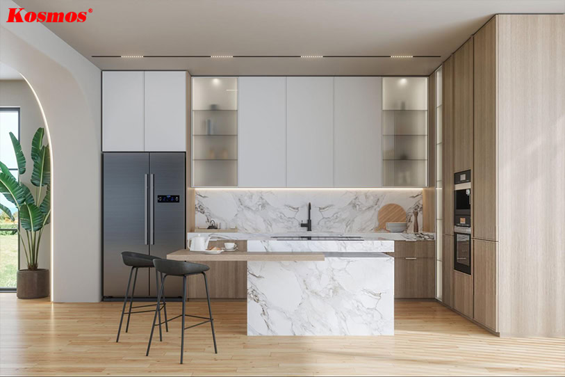 Kosmos Việt Nam được biết đến là tổng kho phân phối uy tín về tấm nhựa giả đá đa dạng kích thước. Cùng với đó, sản phẩm tấm PVC vân đá tại đây có thiết kế chân thật như các loại đá cẩm thạch, hoa cương,… giúp Quý Khách dễ dàng lựa chọn ra sản phẩm phù hợp với công trình của mình.