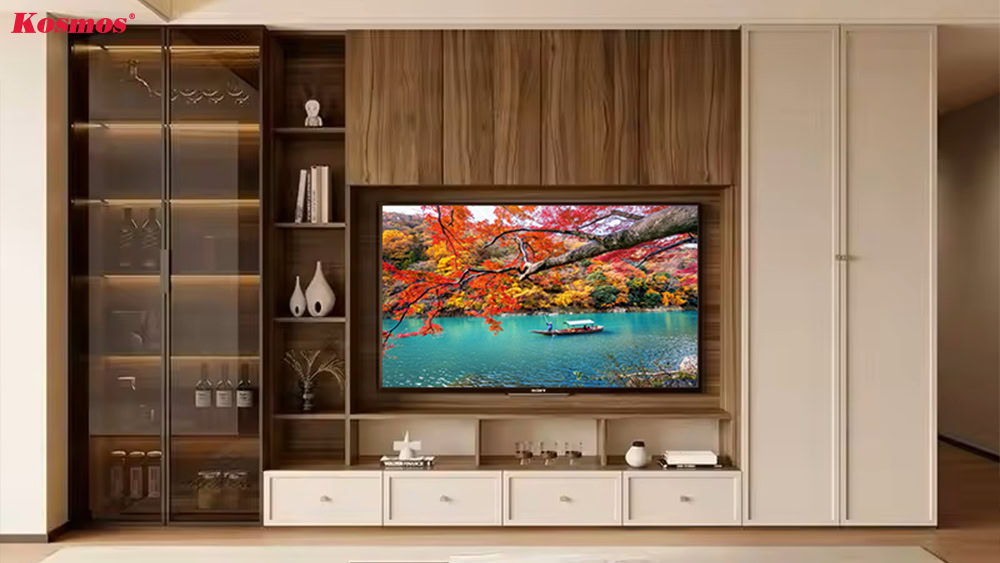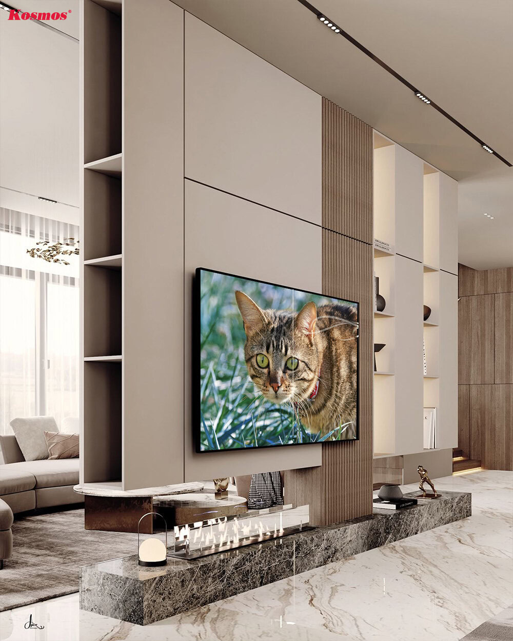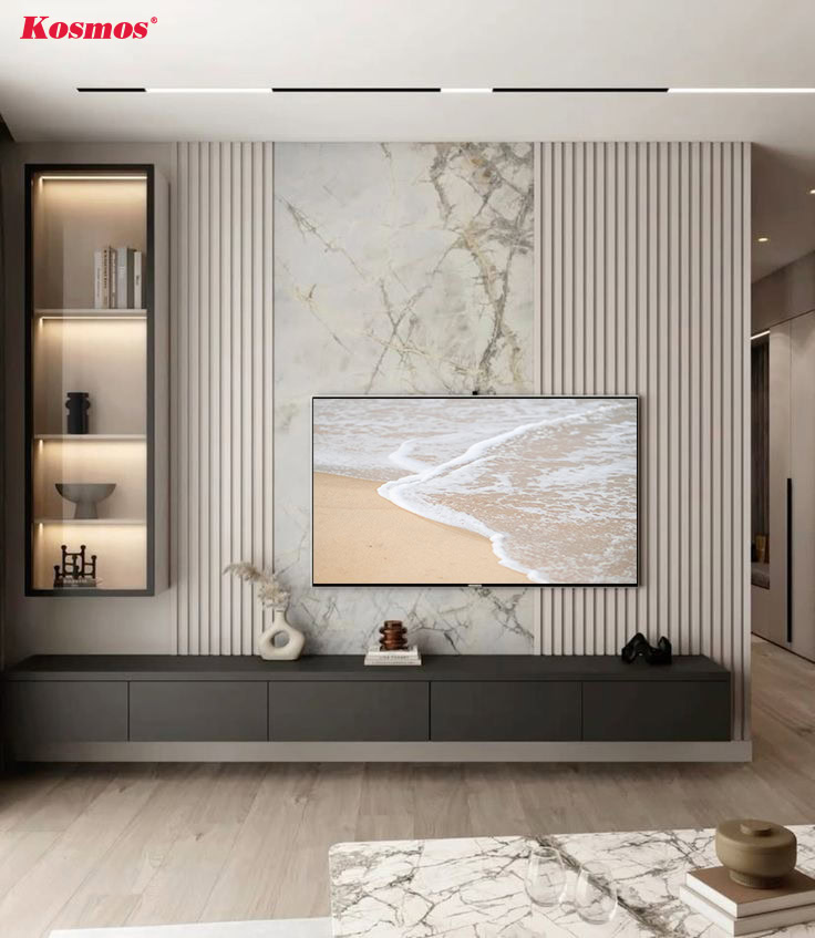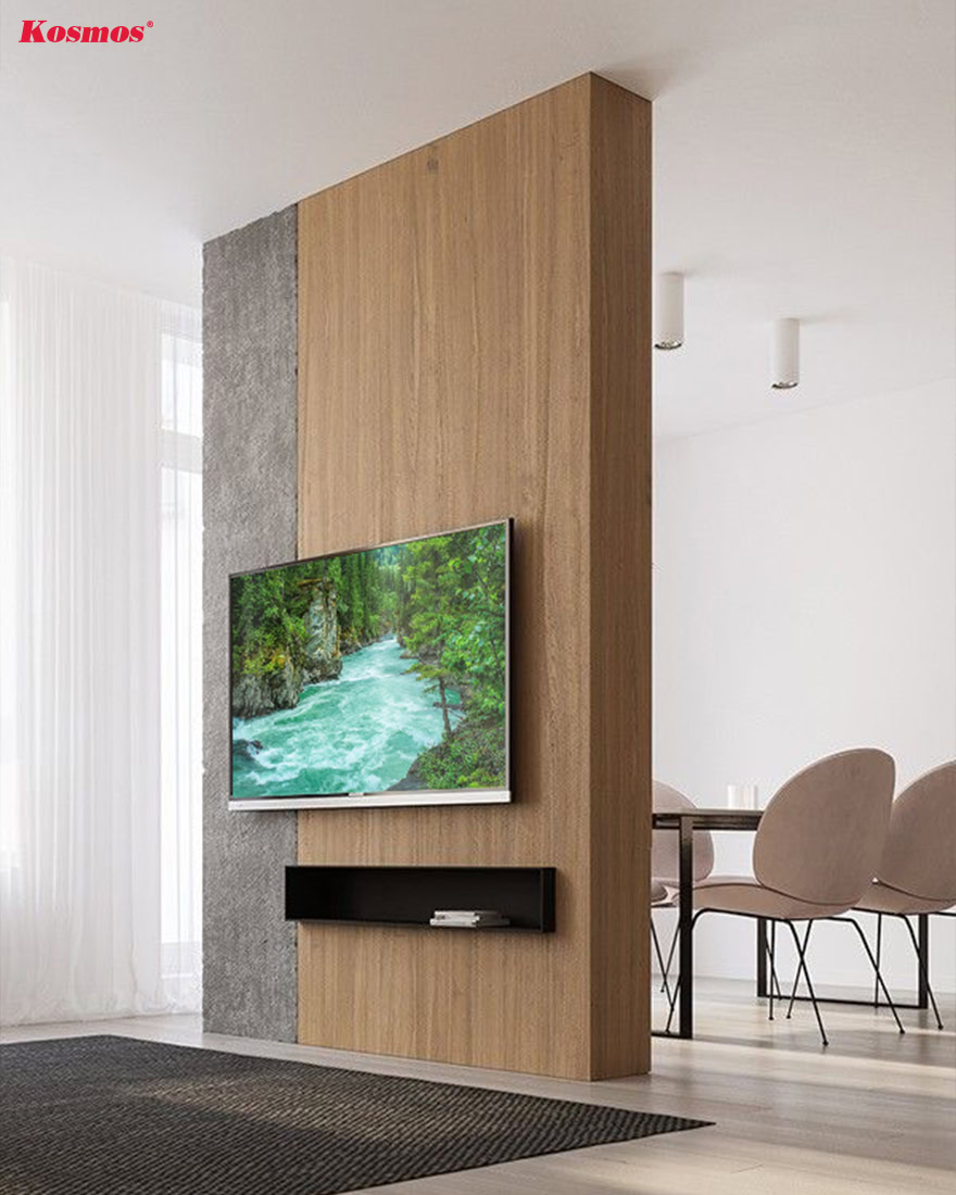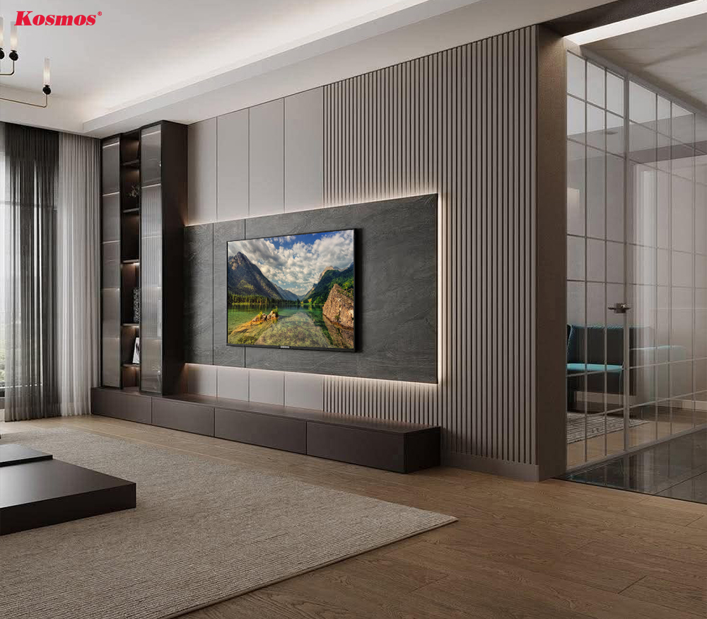 Các dòng sản phẩm ốp vách của Kosmos như tấm ốp than tre, tấm PVC vân đá, tấm ốp nhựa (phẳng và lam sóng) đều được sản xuất theo tiêu chuẩn nghiêm ngặt. Không chỉ chú trọng vào chất lượng, Kosmos còn liên tục cải tiến mẫu mã để mang lại tính thẩm mỹ cao, giúp vách ngăn tivi trở thành điểm nhấn sang trọng, hiện đại trong không gian sống.