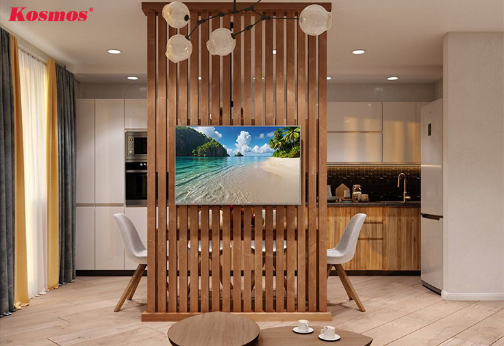 - Tiết kiệm diện tích hiệu quả: So với việc sử dụng vách tường cố định hoặc tủ kệ cồng kềnh, vách ngăn tivi là lựa chọn tinh gọn, giúp căn phòng vừa tiện nghi vừa rộng rãi hơn.