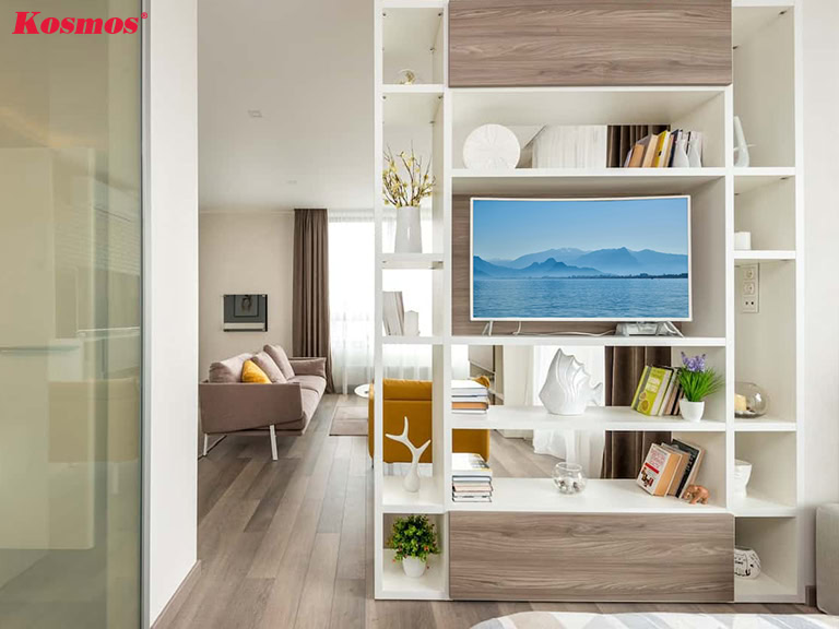 Vách ngăn tivi phòng khách có ưu điểm gì?