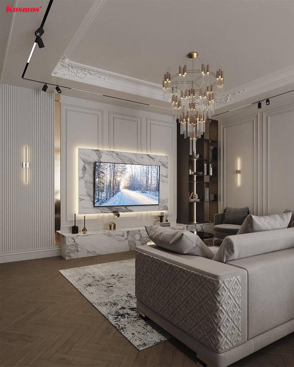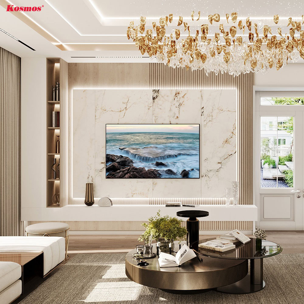 Thành lập từ năm 2012, Kosmos là đơn vị uy tín trong lĩnh vực cung cấp giải pháp trang trí nội – ngoại thất bền đẹp, được nhiều gia chủ, kiến trúc sư và nhà thầu tin tưởng. Với định hướng mang đến những vật liệu vừa thẩm mỹ vừa tối ưu chi phí, Kosmos hiện phân phối đa dạng sản phẩm phù hợp để ốp vách tivi tân cổ điển: