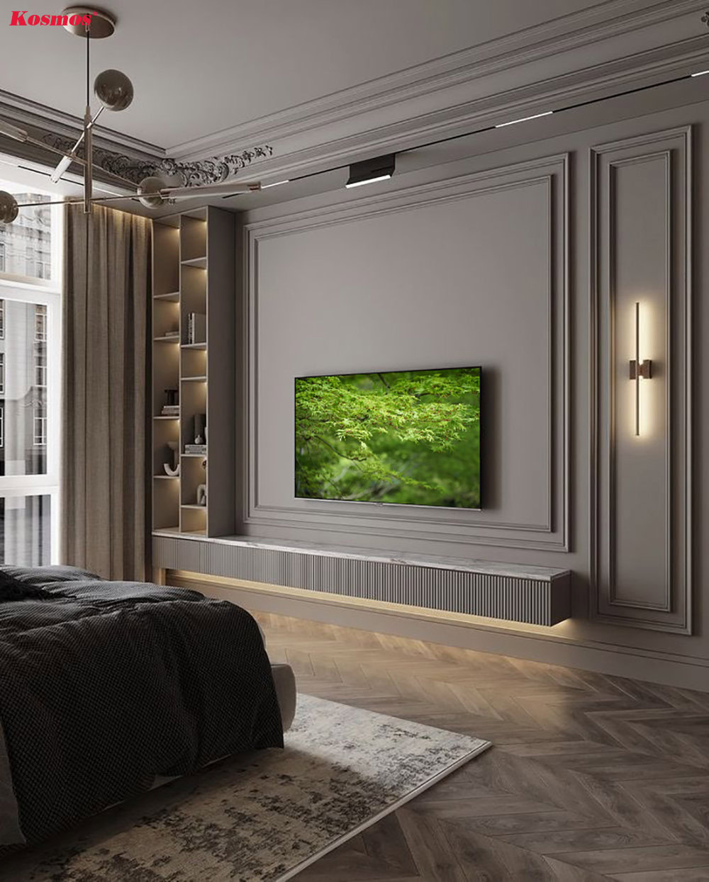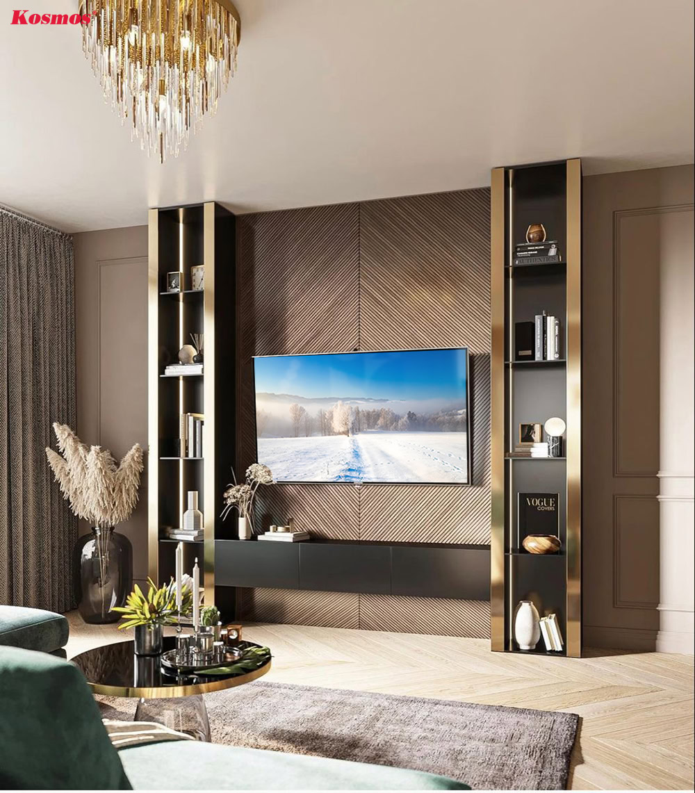 “Vách tivi tân cổ điển nổi bật với sự kết hợp hài hòa giữa nét sang trọng cổ điển và sự tinh gọn hiện đại, tạo nên không gian tiếp khách đẳng cấp.” – Theo Viện Nghiên cứu Kiến trúc Nội thất Việt Nam (2023).