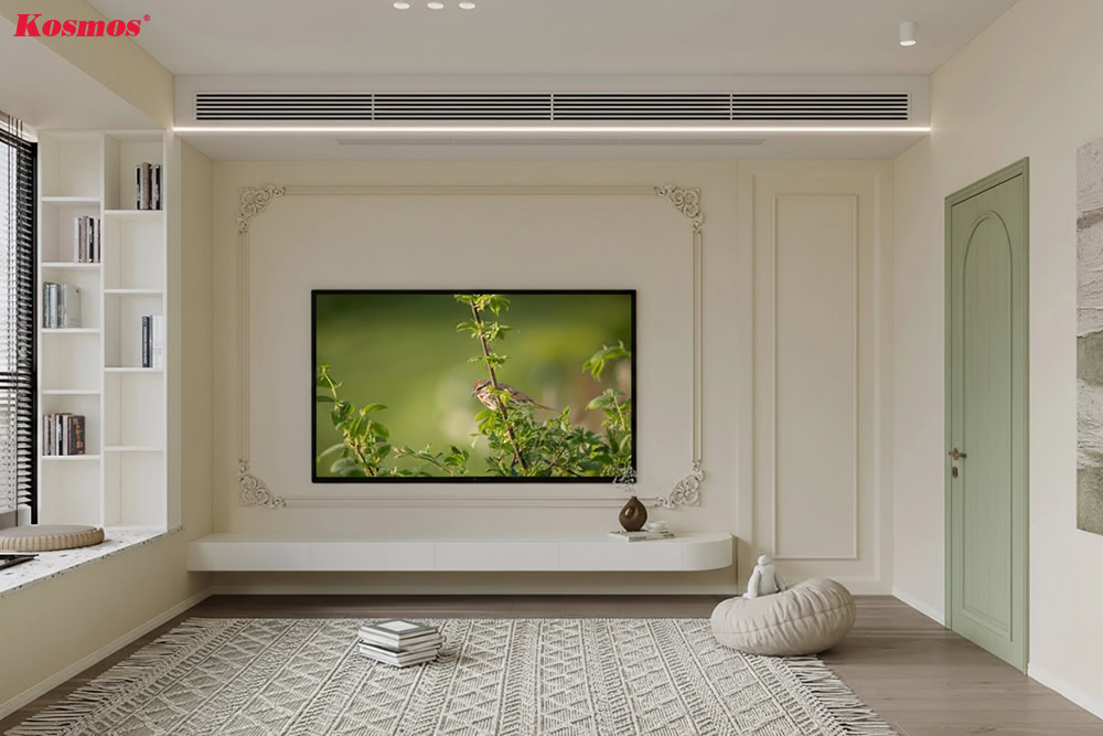 Vách tivi tân cổ điển đơn sắc kết hợp phào chỉ