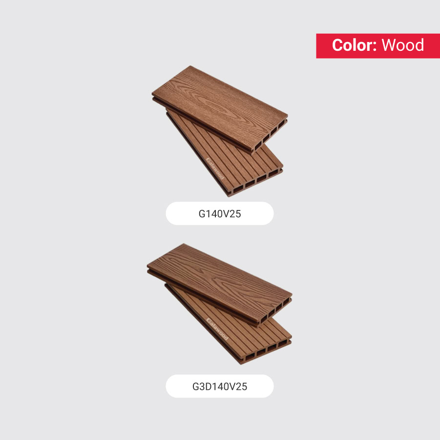 Yếu tố tạo nên sự khác biệt và đẳng cấp cho bộ sàn này chính là màu Wood – gỗ vàng cam độc đáo. Đây là một gam màu ấm áp, tươi sáng, mang lại cảm giác sang trọng, gần gũi và tràn đầy năng lượng cho không gian. Khác biệt hoàn toàn với các tông màu phổ biến, màu gỗ vàng cam giúp không gian ngoại thất trở nên nổi bật, thu hút và đầy sức sống.