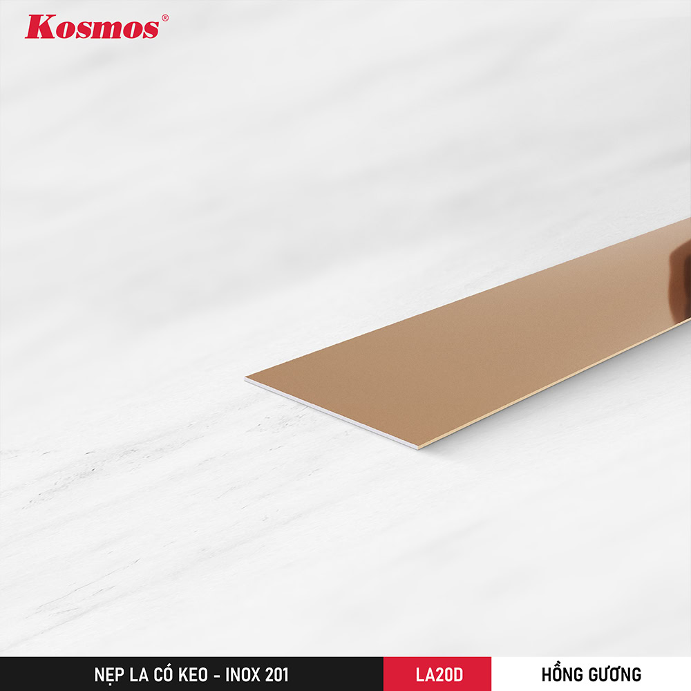 Nẹp la inox có keo dán sẵn LA20D-HG màu hồng gương