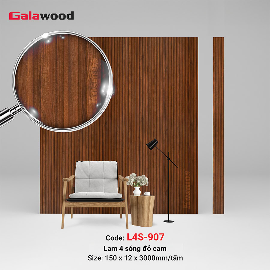 Lam sóng Galawood L4S-907 là sản phẩm tấm nhựa ốp tường, trần giả gỗ chất lượng cao, được nhiều khách hàng tin tưởng lựa chọn. Sản phẩm có nhiều ưu điểm nổi bật, phù hợp với khí hậu nóng ẩm của Việt Nam.