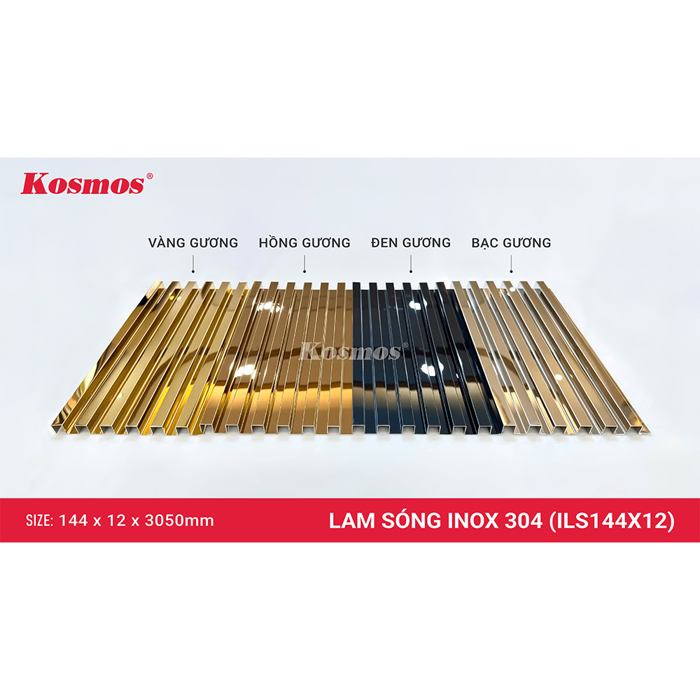 Lam sóng inox màu bạc gương ILS144X12-BG Kosmos tạo điểm nhấn tinh tế