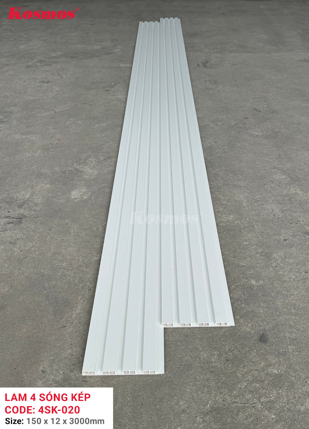 Lam 4 sóng thấp Kosmos mã 4SK-020 màu trắng trơn là giải pháp ốp tường, trần, ốp vách nội thất tinh tế, mang lại vẻ đẹp thanh lịch và hiện đại cho mọi không gian. Được sản xuất theo công nghệ tiên tiến, sản phẩm này không chỉ là vật liệu trang trí thông thường mà còn được đánh giá cao bởi 3 điểm nổi bật sau: