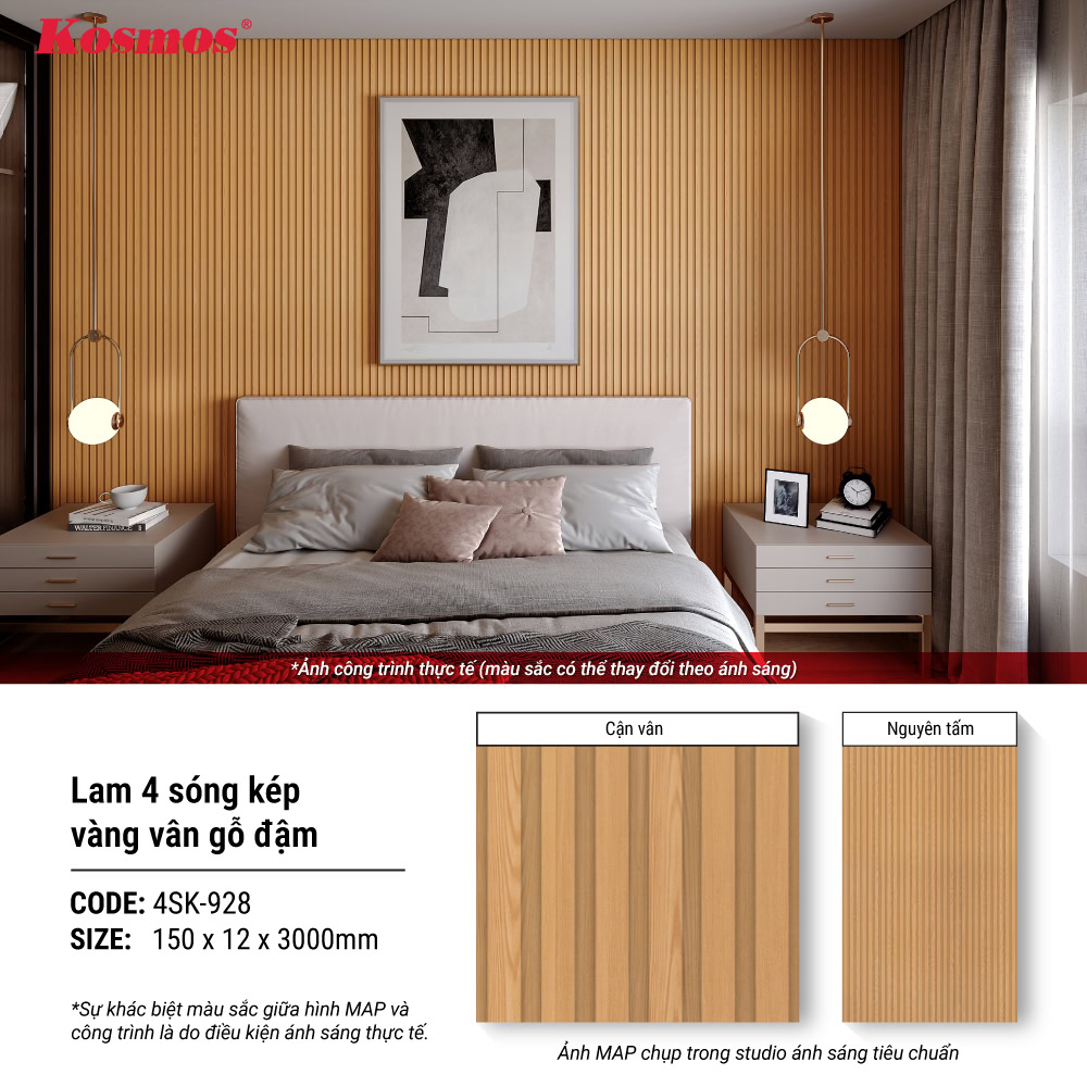 Lam sóng 4SK-928 vàng vân gỗ đậm được đánh giá cao về tính thẩm mỹ và chất lượng trong các công trình trang trí nội thất bởi 4 yếu tố sau: