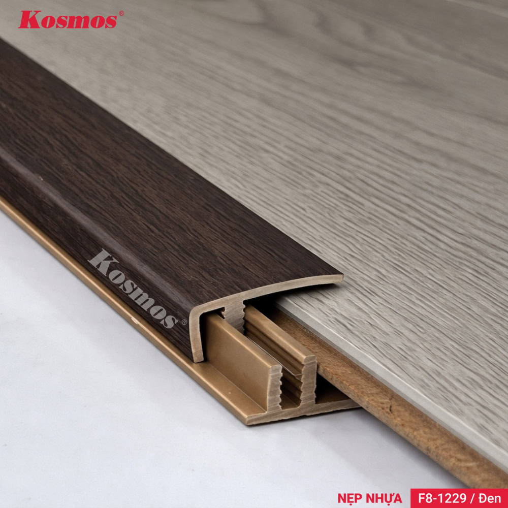 Nẹp F8-1229 đen thường dùng với các nhóm sàn gỗ có sắc độ đậm hoặc trung tính như nâu walnut, nâu đậm và xám ghi. Tông đen tạo viền rõ nên phù hợp với những bề mặt sàn có màu tương đối đậm.