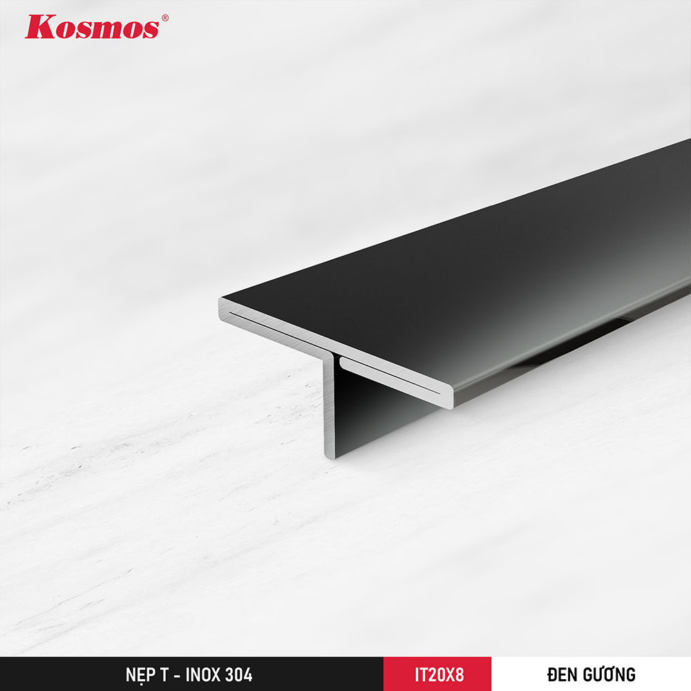 Nẹp inox chữ T màu đen gương mã IT20X8-DG của Kosmos là phụ kiện dùng để xử lý chỗ nối giữa các loại vật liệu lát sàn, ốp tường dày 8mm. Đồng thời làm điểm nhấn trang trí cho tường và trần.