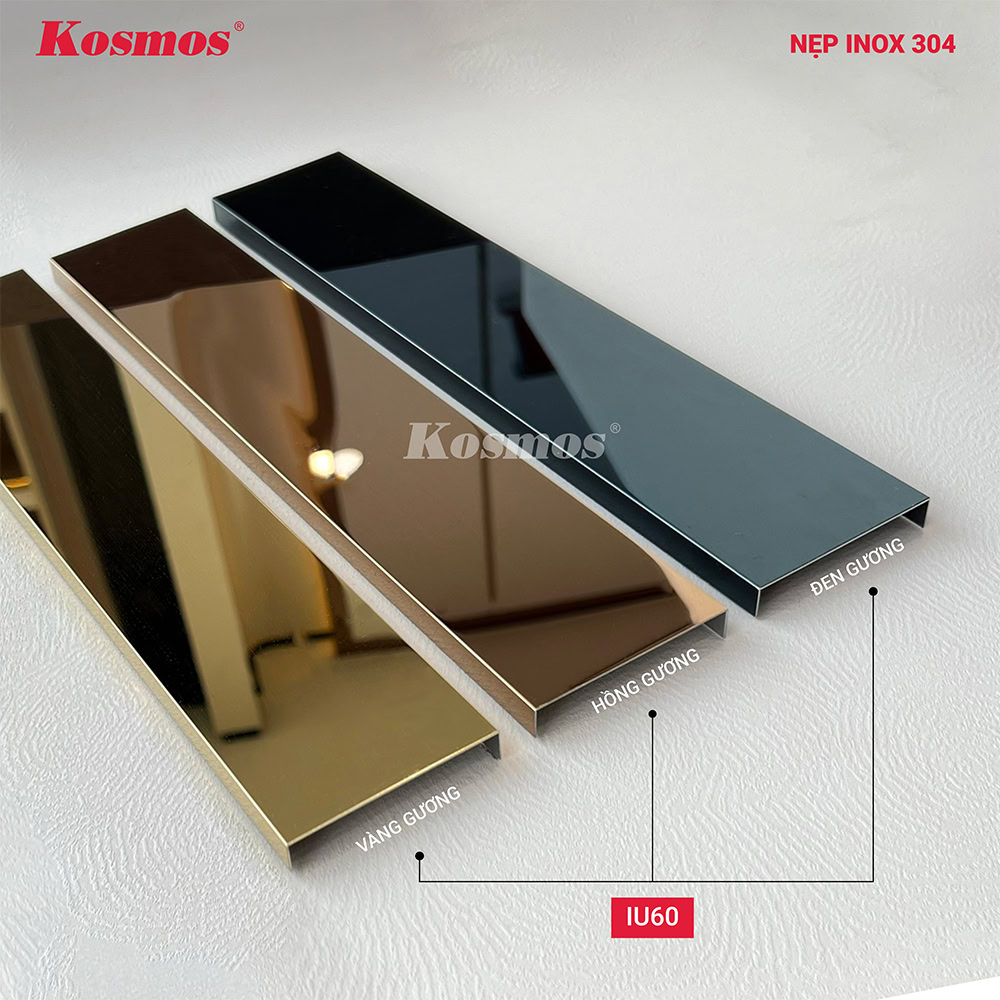 Trong trường hợp cần một màu nẹp sáng hơn hoặc tối hơn, Quý khách có thể tham khảo thêm màu đen gương (IU60-DG) và hồng gương (IU60-HG) trong bộ sưu tập nẹp inox U60 tại Kosmos Việt Nam.
