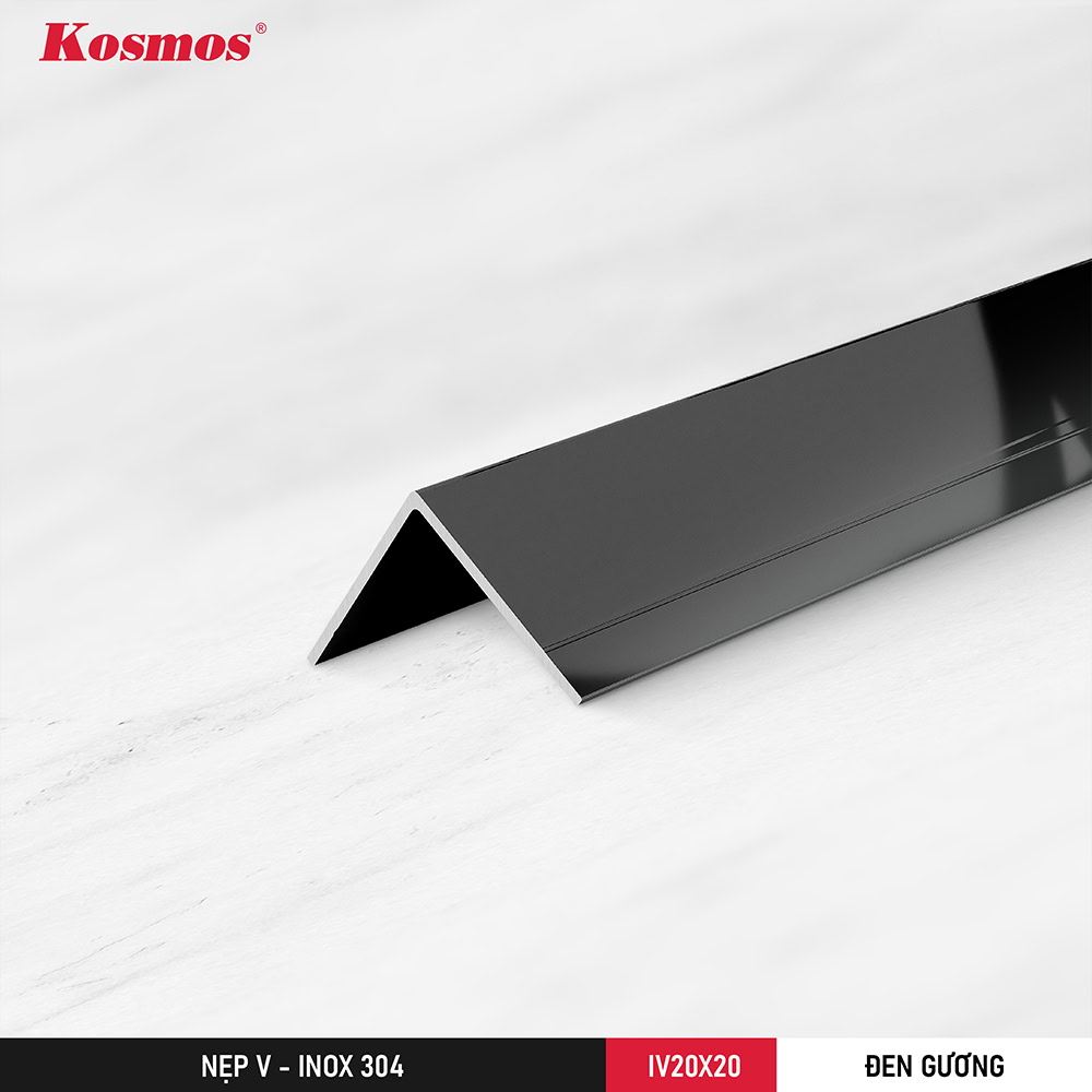 Nẹp inox trang trí v20 màu đen gương của thương hiệu Kosmos (mã sản phẩm IV20X20-DG) là phụ kiện nội thất cao cấp, kết hợp giữa tính thẩm mỹ và khả năng bảo vệ vượt trội. Sản phẩm này thuộc dòng nẹp v, với chất liệu inox 304 sáng bóng, màu đen gương ấn tượng, kích thước 20 x 20 x 3050mm.