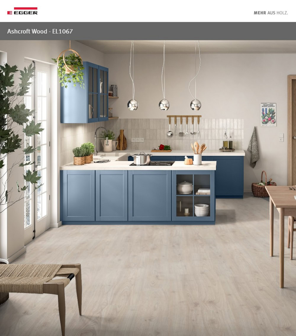 Với khách hàng yêu thích mẫu màu trắng kem của EL1067 nhưng cần cảm giác đầm chắc hơn khi sử dụng ở khu vực sinh hoạt nhiều, có thể tham khảo thêm EHL111 – Egger Classic 12mm.