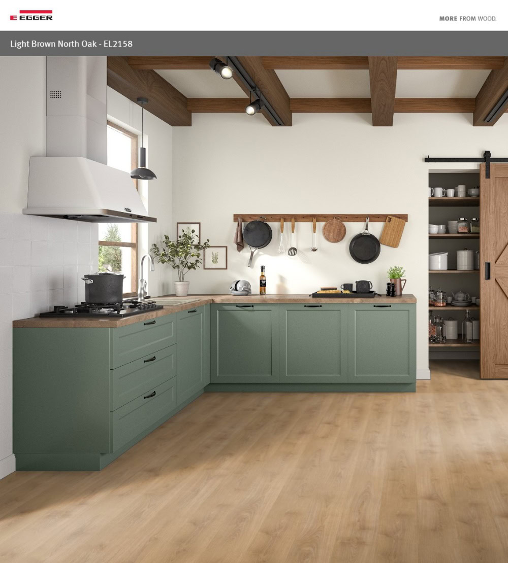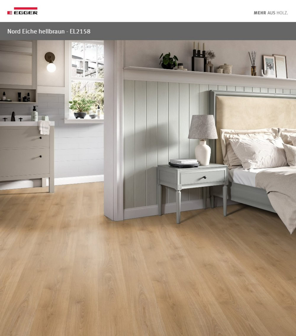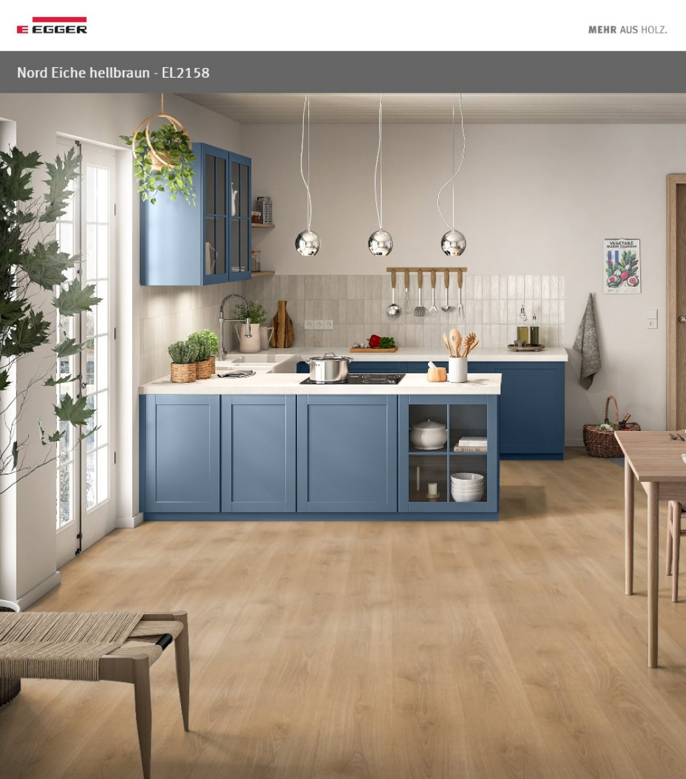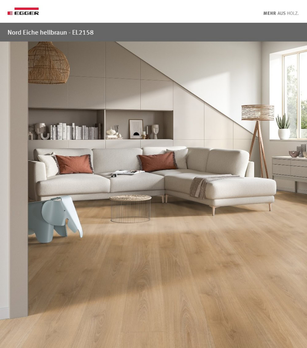 Egger Naturesense 8mm EL2158 phù hợp người dùng cần nền sàn vàng sồi nhạt, tối ưu chi phí nhưng vẫn đảm bảo độ bền 15 – 20 năm trong điều kiện nội thất.
