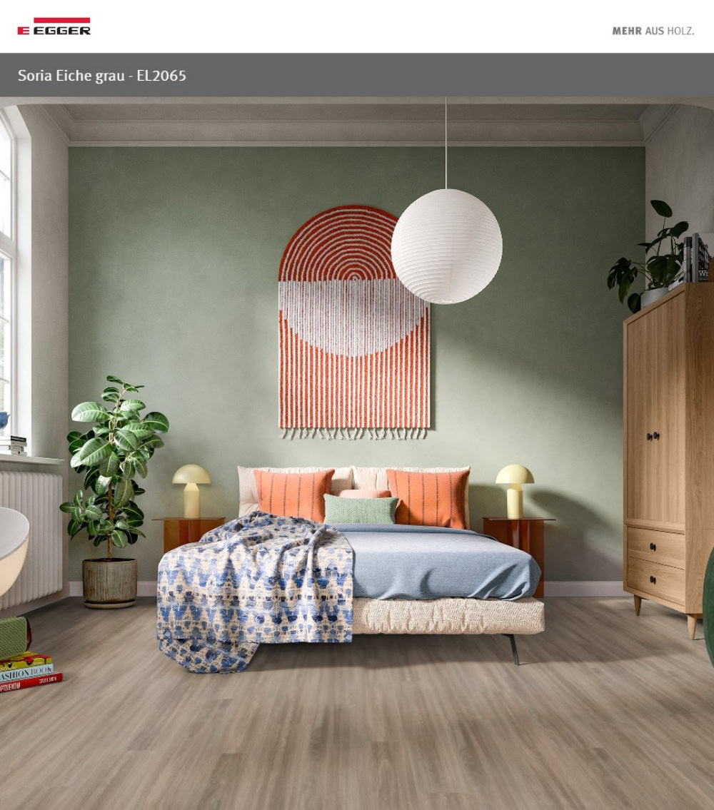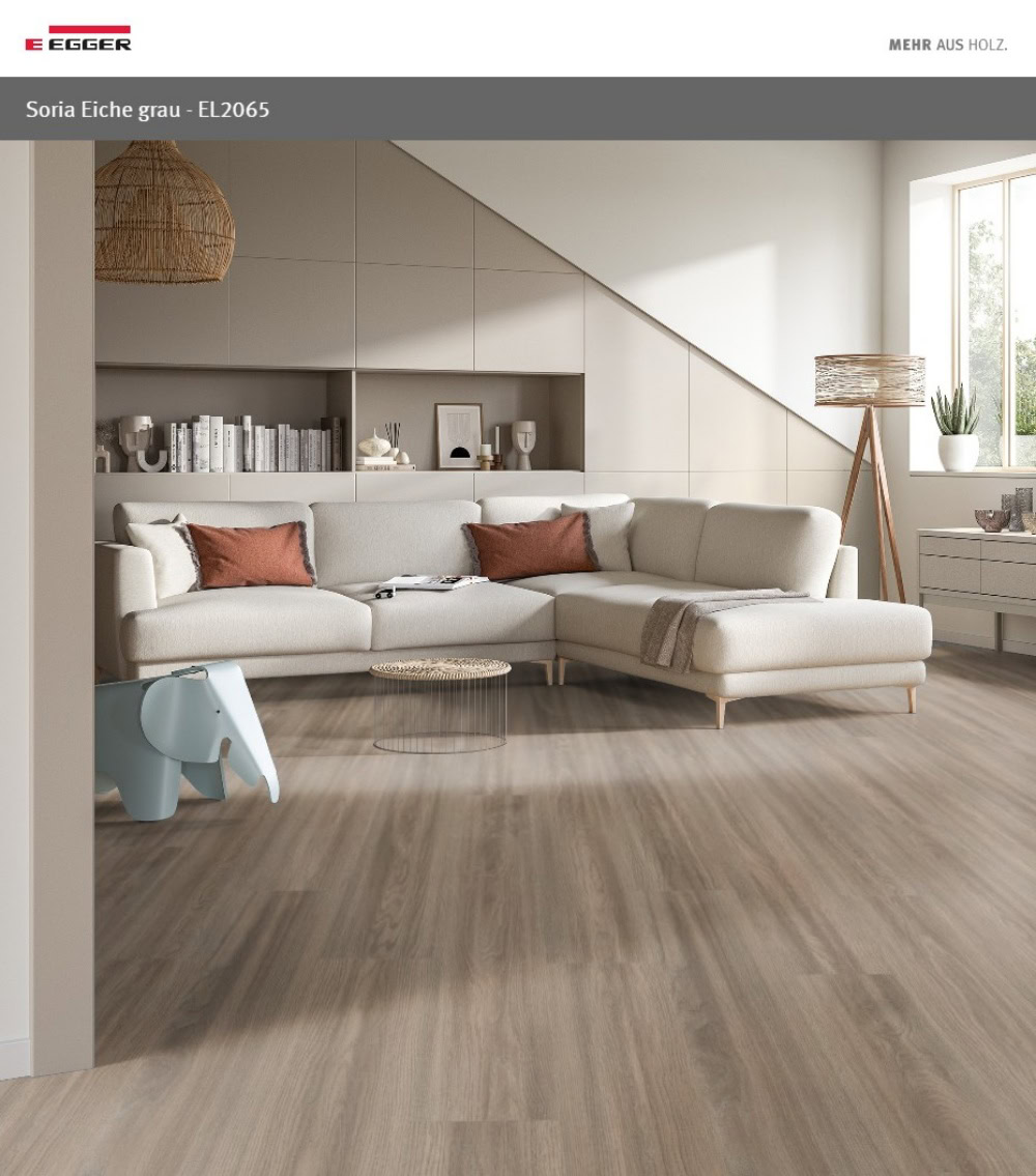 Thuộc bộ sưu tập Naturesense Aqua, mã EL2065 (Grey Soria Oak) là sàn gỗ nhập khẩu Đức thương hiệu Egger, được trang bị hệ hèm khóa Aqua CLIC it! giúp khóa nước bề mặt 24 giờ. Mẫu sàn này có tông xám nâu, phù hợp không gian cần chiều sâu, ấm vừa phải và dễ phối với nội thất gỗ.