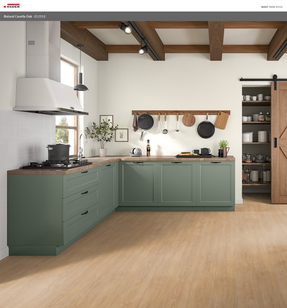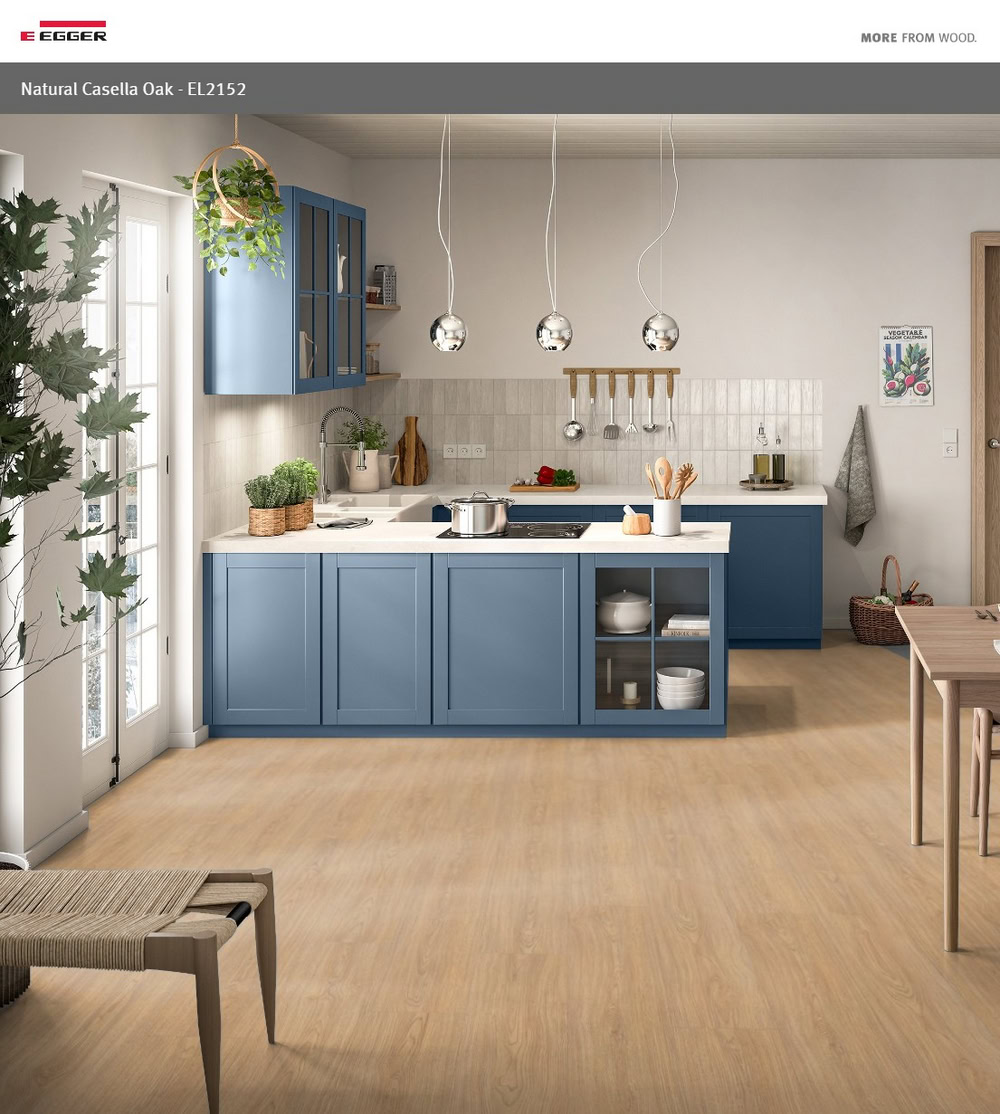 Thuộc dòng NatureSense Aqua+ của Egger, sản phẩm giữ cấu trúc ổn định, phù hợp các khu vực sinh hoạt trong nhà cần độ bền và khả năng thích ứng với môi trường ẩm. Nếu muốn không gian trầm và sang hơn, bạn có thể cân nhắc EL2153 nâu walnut; còn khi ưu tiên nền sáng, nhẹ để mở rộng thị giác, EL2240 vàng sồi nhạt hoặc EL2184 xám trắng sẽ là lựa chọn phù hợp trong cùng dòng.