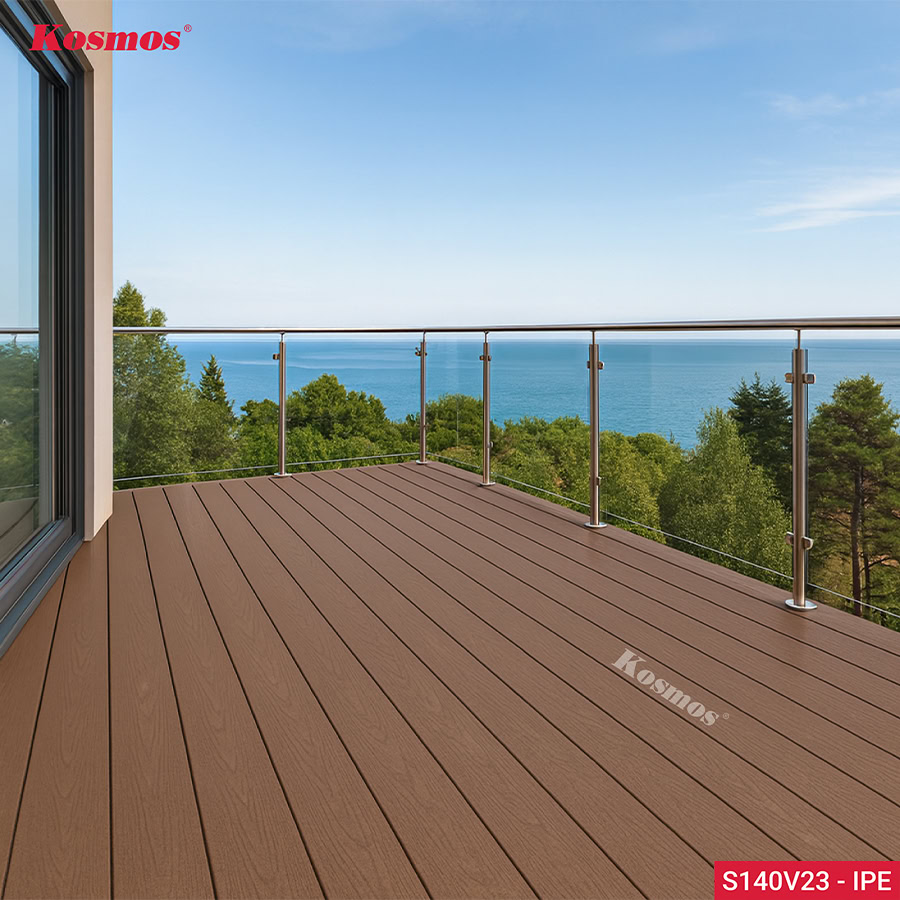Sàn gỗ nhựa lỗ vuông 2 da S140V23 màu nâu đỏ (IPE) còn được gọi là sàn gỗ nhựa 2 lớp phủ Polymer, là vật liệu lát sàn ngoài trời thế hệ mới được kết hợp hoàn hảo giữa 55% bột gỗ tự nhiên và 35% nhựa HDPE, mang đến giải pháp lát sàn ngoài trời với độ bền cao và tính thẩm mỹ sang trọng. Với kích thước 140x23mm, sản phẩm này đặc biệt phù hợp cho các công trình hồ bơi, ban công, sân thượng và khu vực ngoại thất cần khả năng chịu nước tốt và chống trơn trượt hiệu quả.
