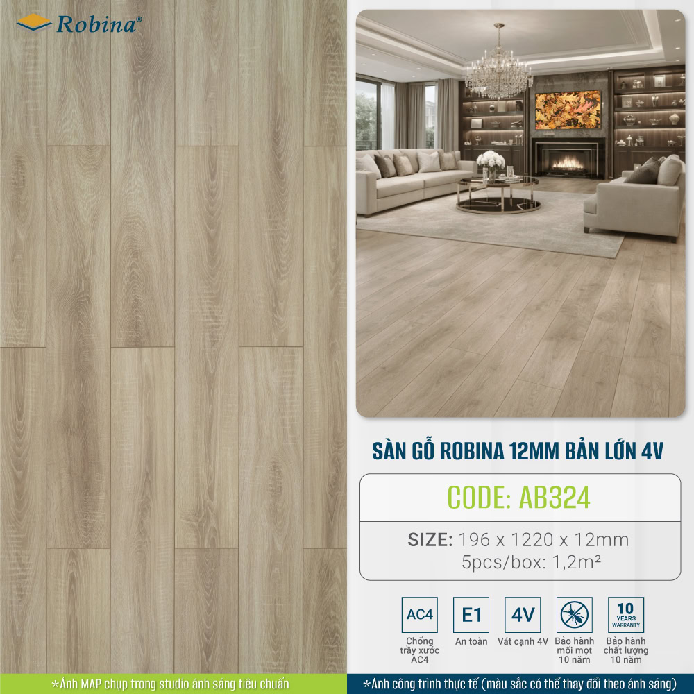 Sàn gỗ Robina 12mm bản lớn – AB324