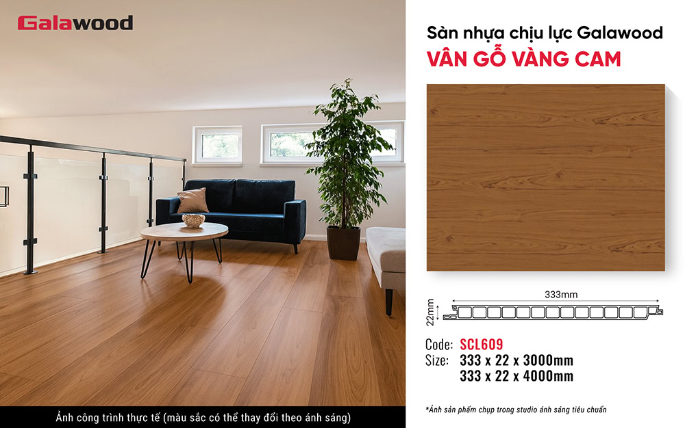 Tấm nhựa lót sàn gác lửng Galawood SCL609 – Tô điểm cá tính với vân gỗ vàng cam ấn tượng