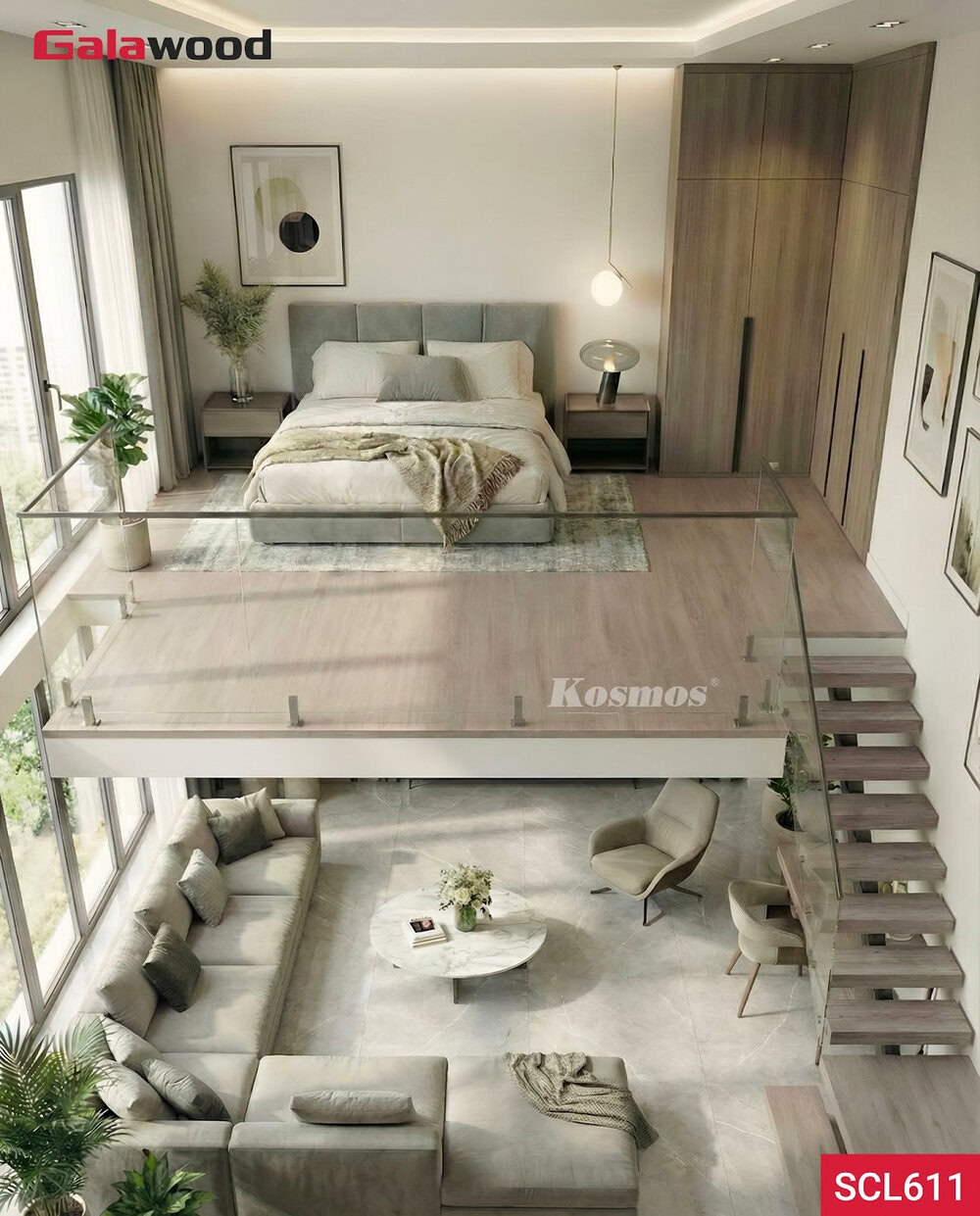Tấm nhựa lót sàn gác lửng Galawood SCL611 là lựa chọn đáng tin cậy cho gia chủ muốn một bề mặt chịu tải 500kg/m², bền 10 – 15 năm và có thẩm mỹ hiện đại. Màu xám nhạt mang lại cảm giác thoáng và sạch, rất phù hợp cho gác lửng, phòng ngủ nhỏ hay các không gian cần sự nhẹ nhàng.