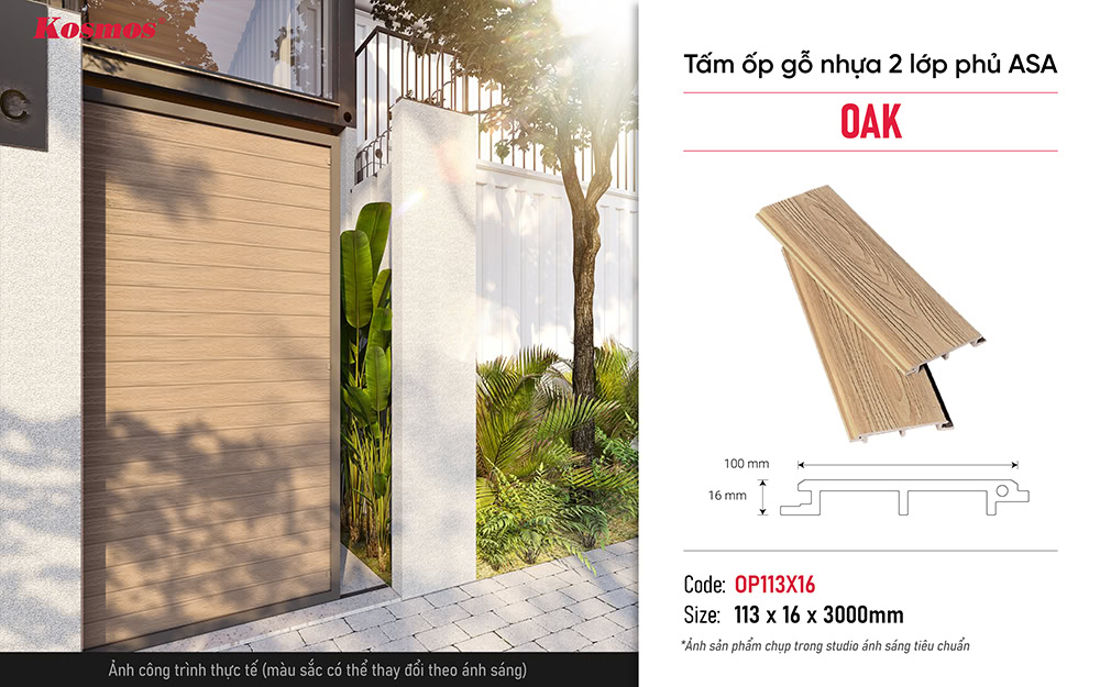 Tấm ốp gỗ nhựa ASA vân gỗ 3D chà nhám mã OP113X16 Oak là một trong những dòng sản phẩm gỗ nhựa đang được Kosmos phân phối đến hơn 500 đại lý trên toàn quốc. Những chia sẻ sau đây sẽ giúp Quý khách hiểu rõ hơn về vật liệu này.