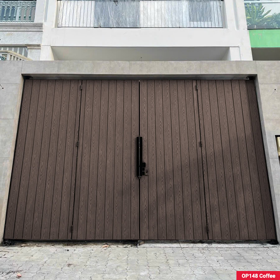 Sản phẩm còn được ứng dụng cho ốp cổng, bảng hiệu và các công trình trang trí ngoại thất khác nhờ tính linh hoạt và dễ thi công với hệ thống hèm khóa hiện đại.