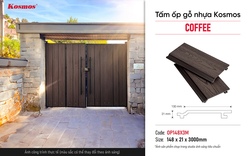Tấm ốp gỗ nhựa ngoài trời vân gỗ 2D OP148X3M/2.2M Coffee là gì?