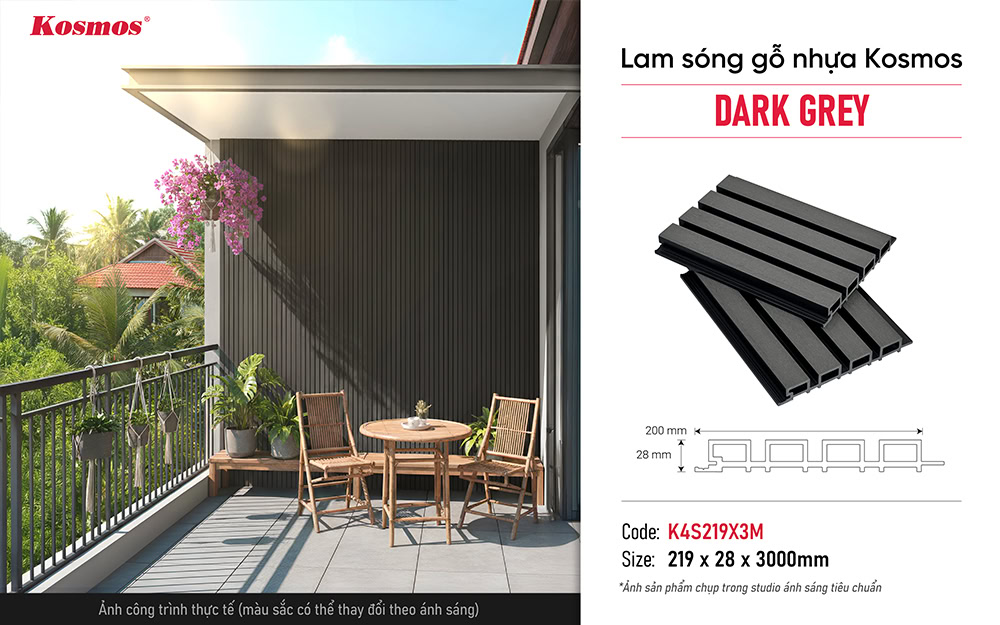 Các thông số kỹ thuật chi tiết của lam sóng gỗ nhựa Kosmos K4S219X3M/2.2M Dark Grey