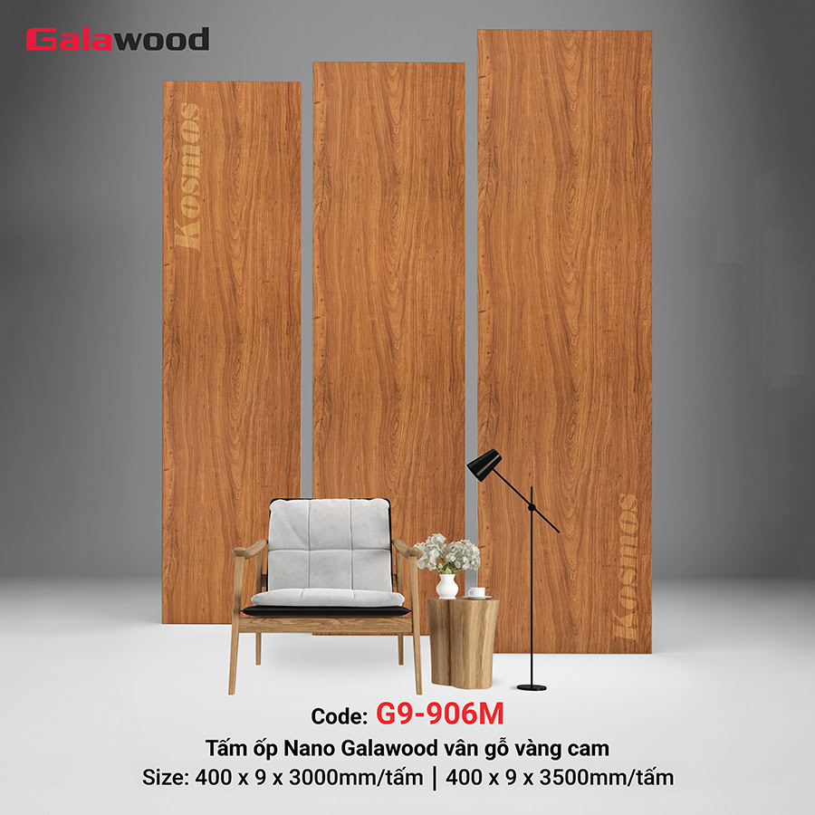 Tấm ốp Nano Galawood G9-906M là sản phẩm ốp tường, ốp trần đến từ thương hiệu Galawood nổi tiếng. Với thiết kế vân gỗ vàng cam tinh tế cùng những tính năng vượt trội, G9-906M hứa hẹn mang đến cho không gian nội thất của bạn vẻ đẹp sang trọng, hiện đại và đẳng cấp.