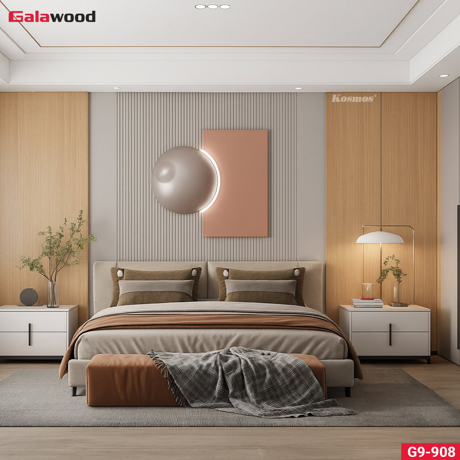 - Phù hợp với nhiều phong cách trang trí: Nổi bật với họa tiết vân gỗ tự nhiên và màu sắc hiện đại, tấm Nano Galawood G9-908 phù hợp với nhiều phong cách trang trí khác nhau, từ cổ điển đến hiện đại với đa dạng ứng dụng như ốp tường, ốp trần, ốp vách ngăn trong không gian nội thất,…
