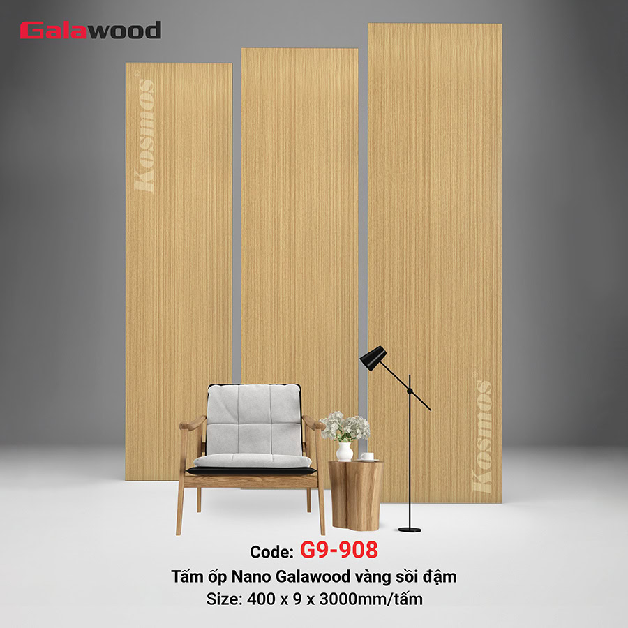 Tấm ốp Nano Galawood G9-908 màu vàng với vân gỗ đậm là một lựa chọn trang trí nội thất tinh tế và ấn tượng. Các thông tin sau đây sẽ giúp Quý Khách hiểu rõ hơn về sản phẩm này.