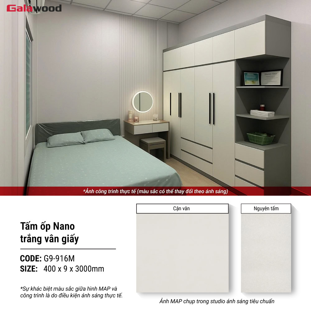 Tấm ốp Nano Galawood G9-916M trắng vân giấy