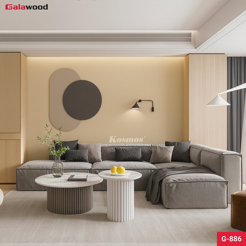 - Dễ dàng phối hợp: G-886 có thể kết hợp hài hòa với nhiều màu sắc và vật liệu khác, từ vân gỗ, vân đá đến kim loại, tạo nên sự đa dạng trong thiết kế và phù hợp với nhiều phong cách nội thất.