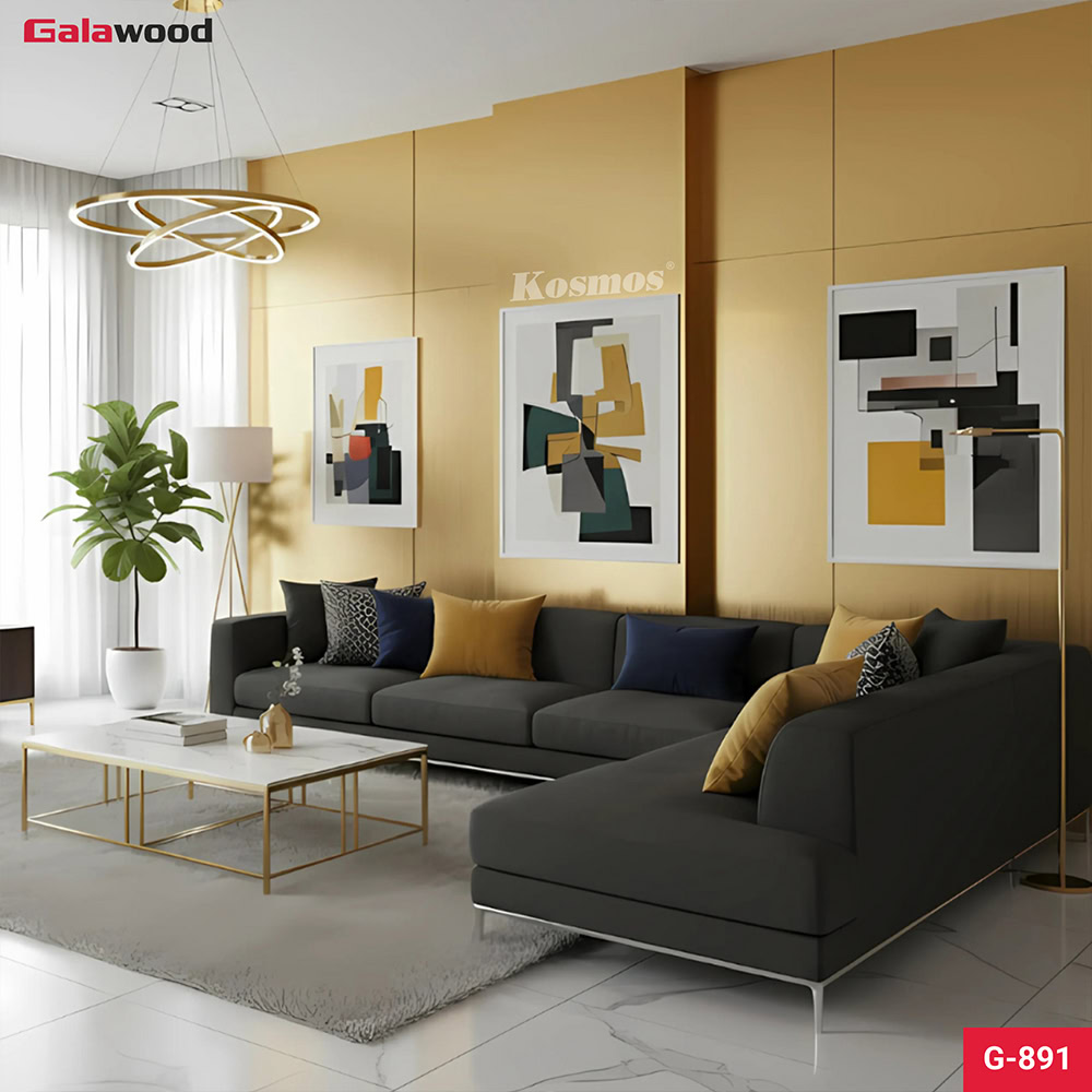 5. Ứng dụng tấm ốp than tre vân kim loại xước vàng G-891