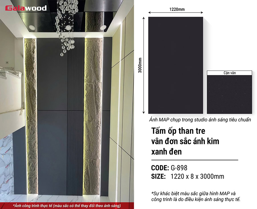 Với những ưu điểm về thiết kế sang trọng, công năng ưu việt và tính thẩm mỹ cao, tấm ốp than tre đơn sắc ánh kim Galawood G-898 là lựa chọn phù hợp cho các công trình nội thất hiện đại, đáp ứng xu hướng thiết kế không gian sống tinh tế và bền đẹp theo thời gian.