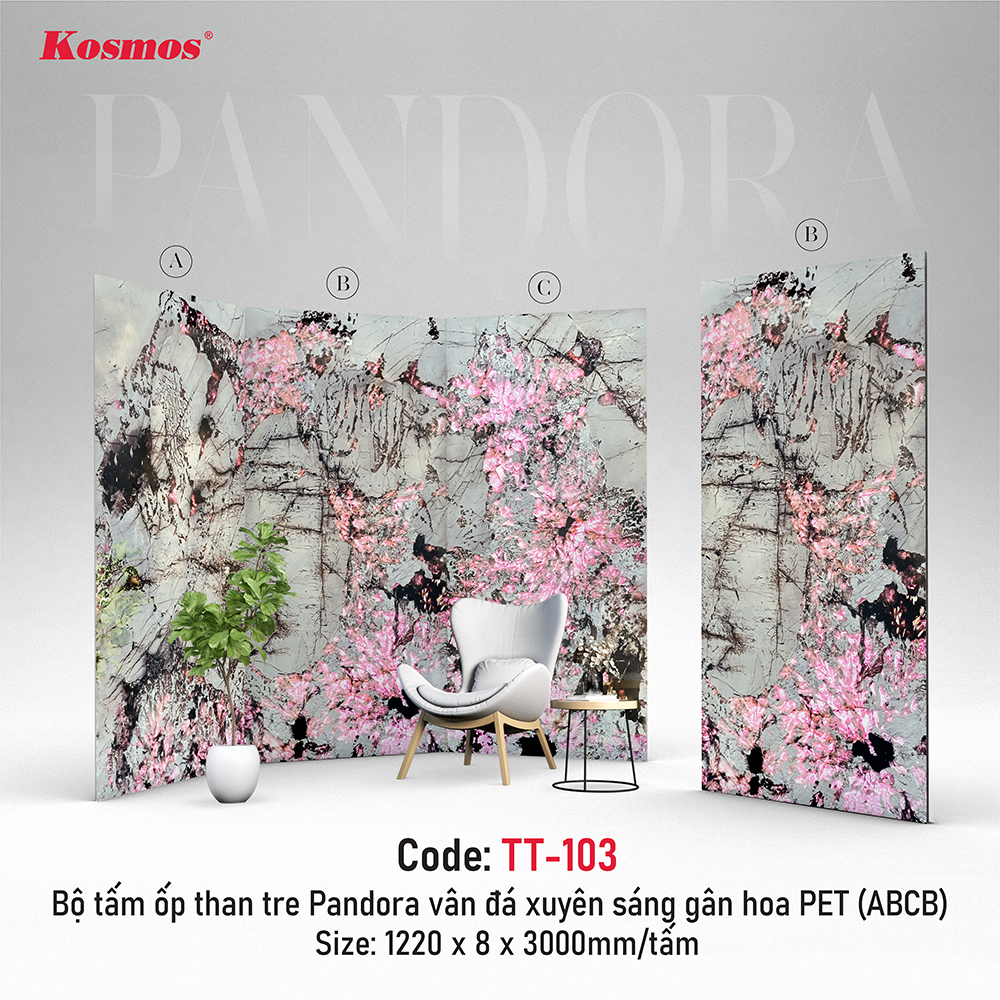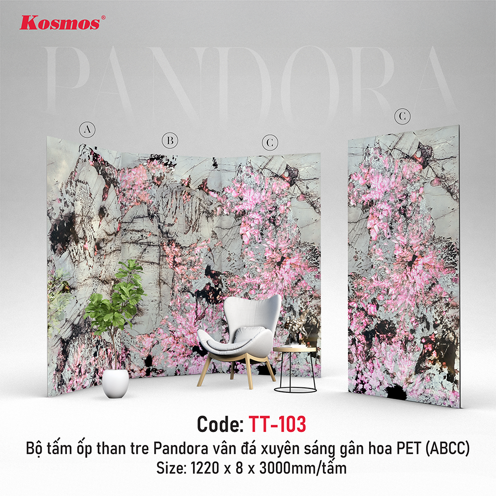 Bộ Pandora vân đá xuyên sáng gân hoa TT-103 tạo được một mảng tường lớn có chiều sâu, nhìn sáng nhưng không đơn điệu, đồng thời vẫn phù hợp với nhu cầu cải tạo nhà theo hướng nhanh và gọn. Với những ai đang tìm một dòng tấm ốp có hiệu ứng bề mặt đẹp, thi công ít bụi, dễ vệ sinh và có thể xử lý bo góc hoặc uốn cong theo thiết kế, đây là một lựa chọn đáng cân nhắc.