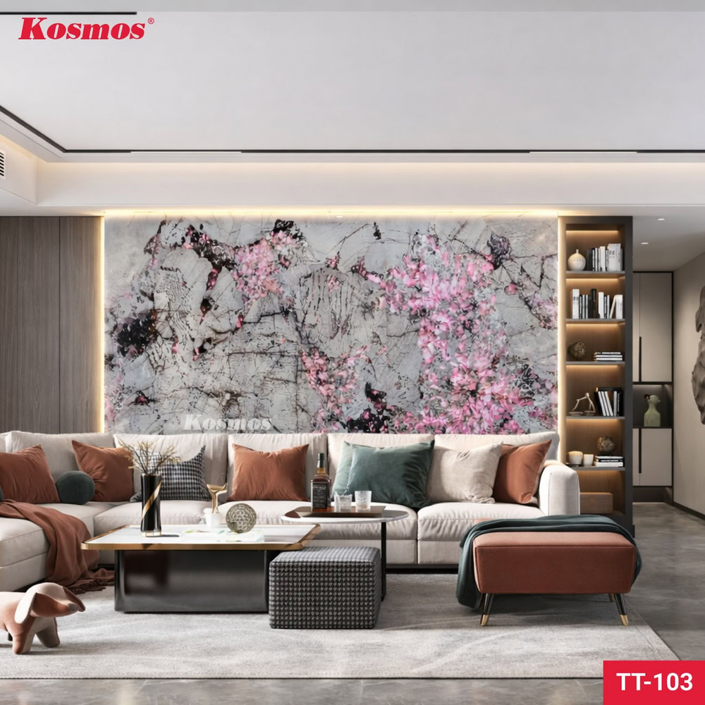 Mẫu vân đá xuyên sáng gân hoa của TT-103 tạo hiệu ứng không gian ra sao?