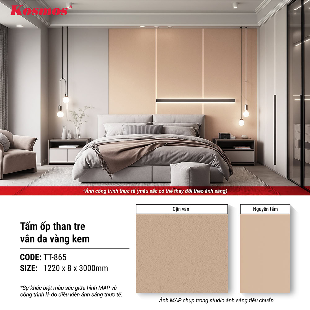 TT-865: Tấm ốp than tre vân da vàng kem Kosmos