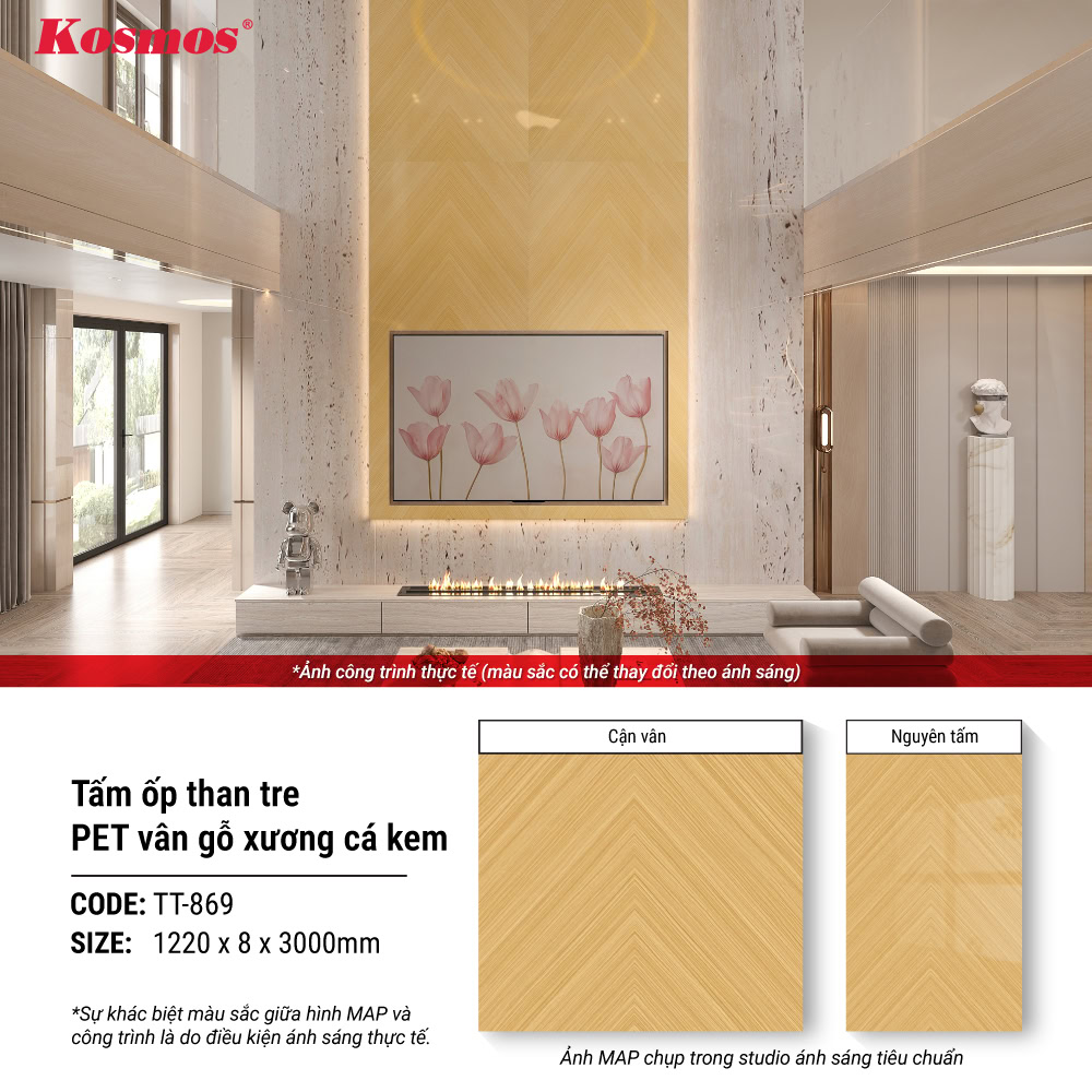 Tấm ốp than tre vân gỗ xương cá phủ PET màu vàng kem TT-869 là giải pháp trang trí nội thất toàn diện kết hợp công nghệ tiên tiến, thẩm mỹ tinh tế và hiệu quả kinh tế cao. Với cấu tạo 5 lớp độc quyền, khả năng chống chịu môi trường vượt trội và tính linh hoạt trong thiết kế, sản phẩm đáp ứng mọi nhu cầu từ không gian dân dụng đến công trình thương mại cao cấp, mang lại giá trị bền vững trong suốt 15 năm sử dụng. Kosmos sẵn sàng tư vấn thêm về sản phẩm qua số 0932.067.388.