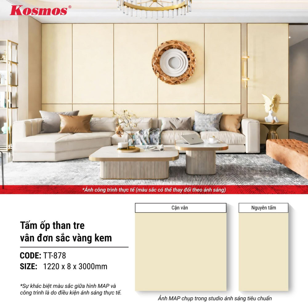 Tấm ốp than tre TT-878 vân đơn sắc vàng kem có gì đặc biệt?