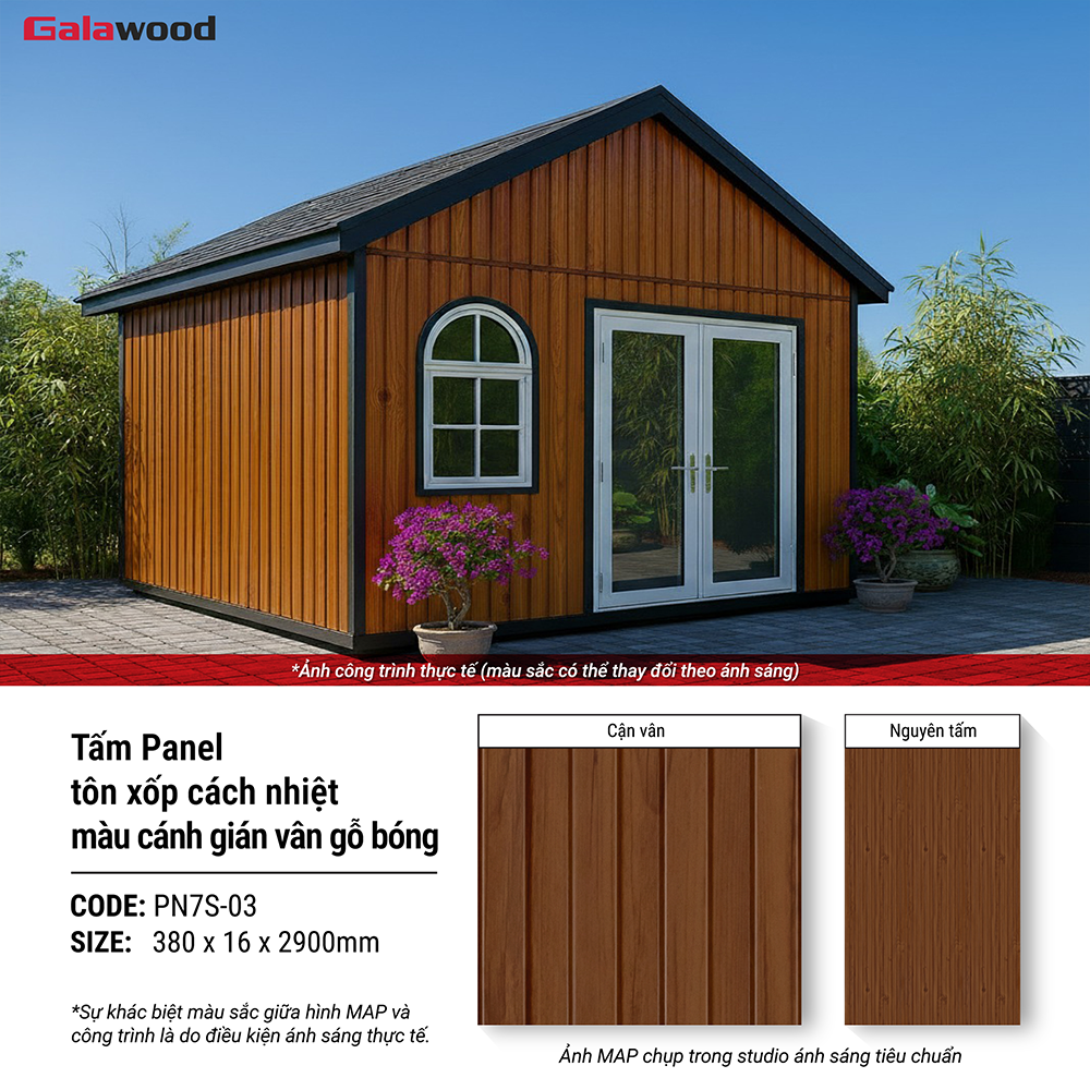 Tấm Panel tôn xốp cách âm, cách nhiệt ngoài trời PN7S-03 là vật liệu ngoài trời hiện đang được Kosmos phân phối trên thị trường với bề mặt bóng 7 sóng màu cánh gián. Đây là vật liệu chuyên dùng để ốp tường, ốp vách cho không gian ngoại thất như nhà xưởng, nhà tiền chế, kho lạnh, hầm cấp đông,… đang được Kosmos phân phối trên thị trường.