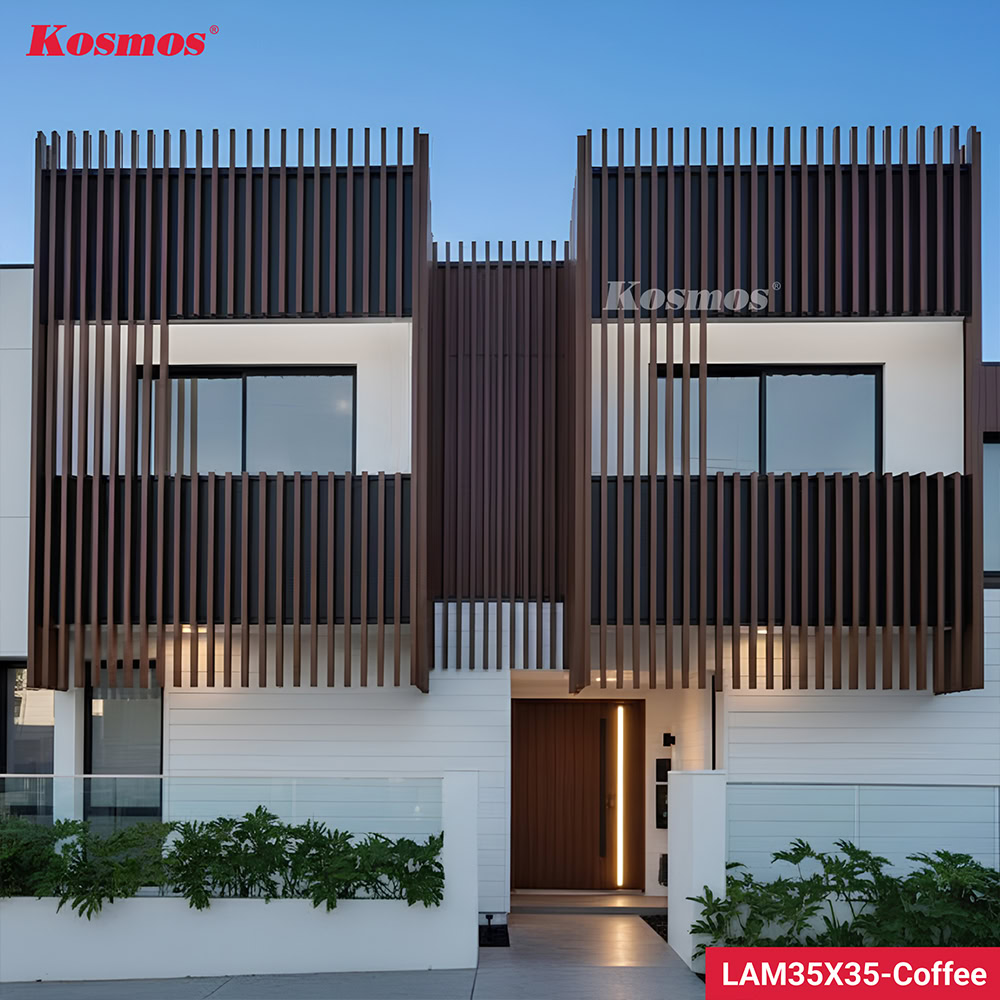 Để tạo nên một tổng thể ngoại thất hoàn mỹ, bạn có thể kết hợp lam hộp LAM35X35 nâu cà phê với các vật liệu đồng màu: