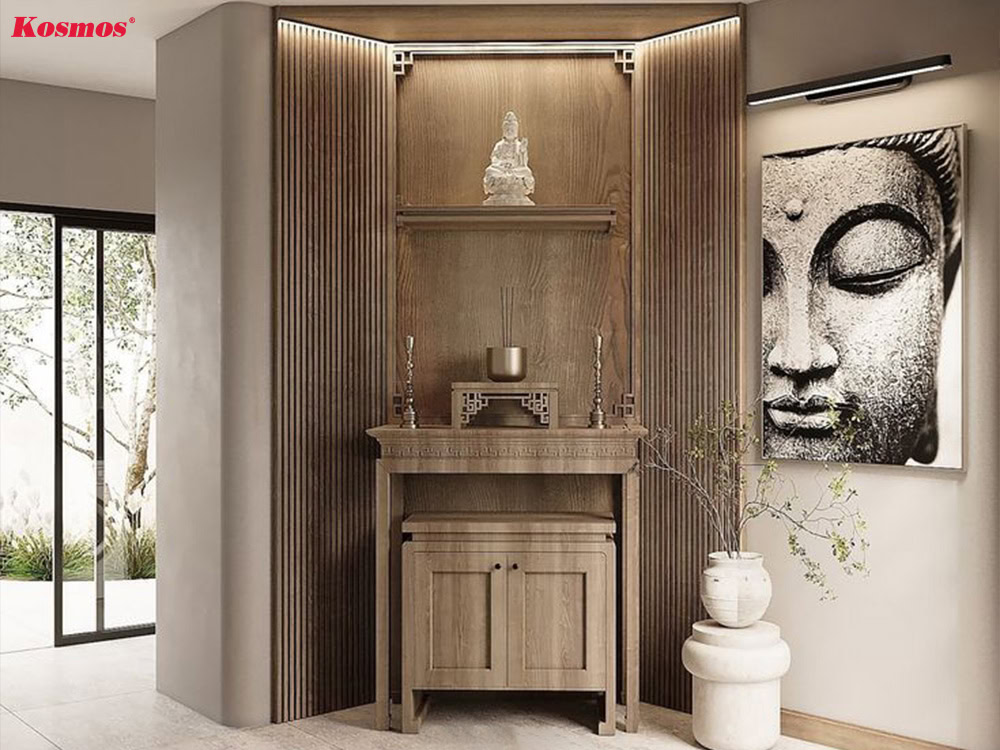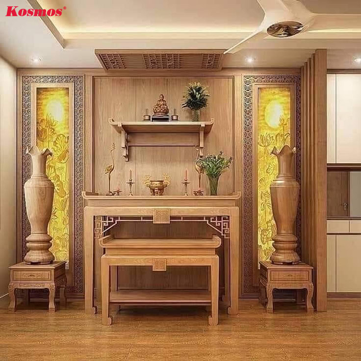 - Tiết kiệm chi phí và dễ vệ sinh: So với gỗ tự nhiên, tấm ốp Nano, lam sóng có giá thành hợp lý, dễ lau chùi, phù hợp cho những gia đình muốn tối ưu chi phí mà vẫn duy trì không gian thờ cúng trang nghiêm.