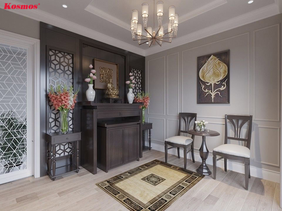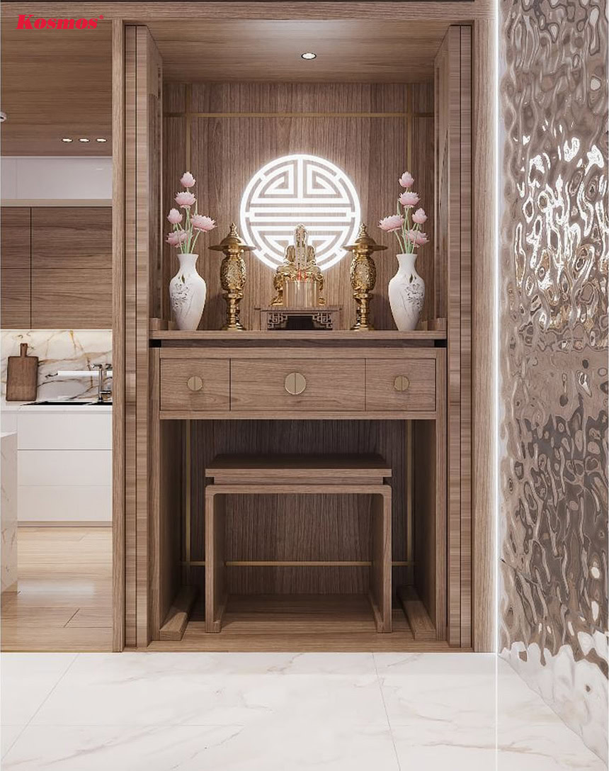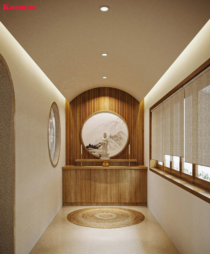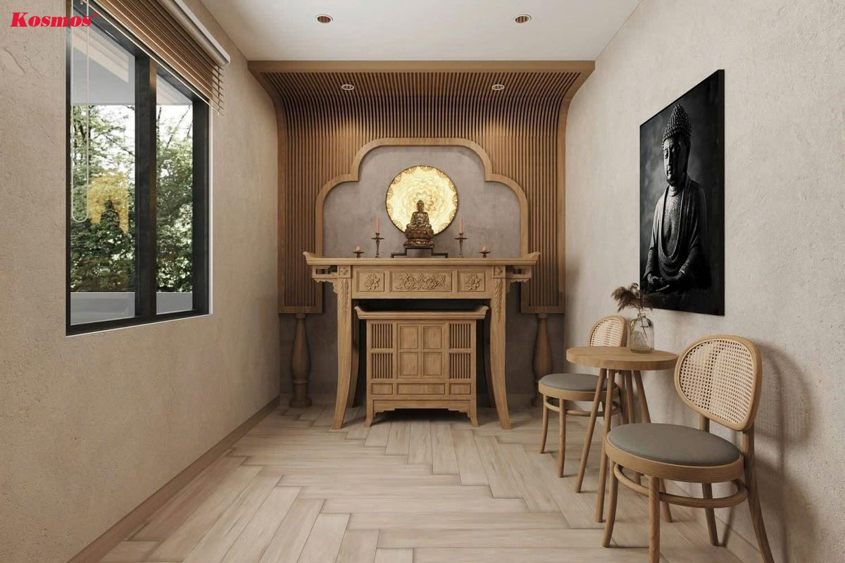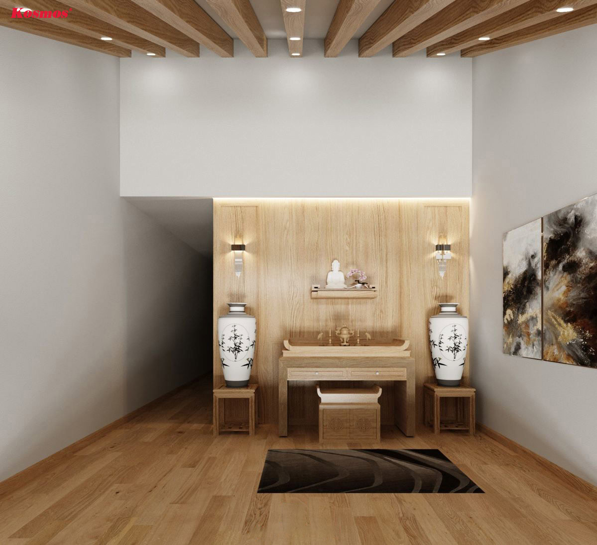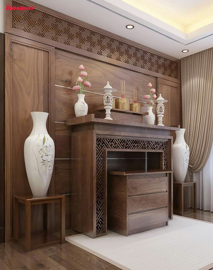 - Quan tâm đến màu sắc: Nên lựa chọn tông màu trầm ấm, trung tính hoặc giả gỗ, giả đá, vừa tạo cảm giác trang nghiêm vừa thuận theo phong thủy. Tránh những màu quá rực rỡ hoặc lệch tông với tổng thể căn nhà.