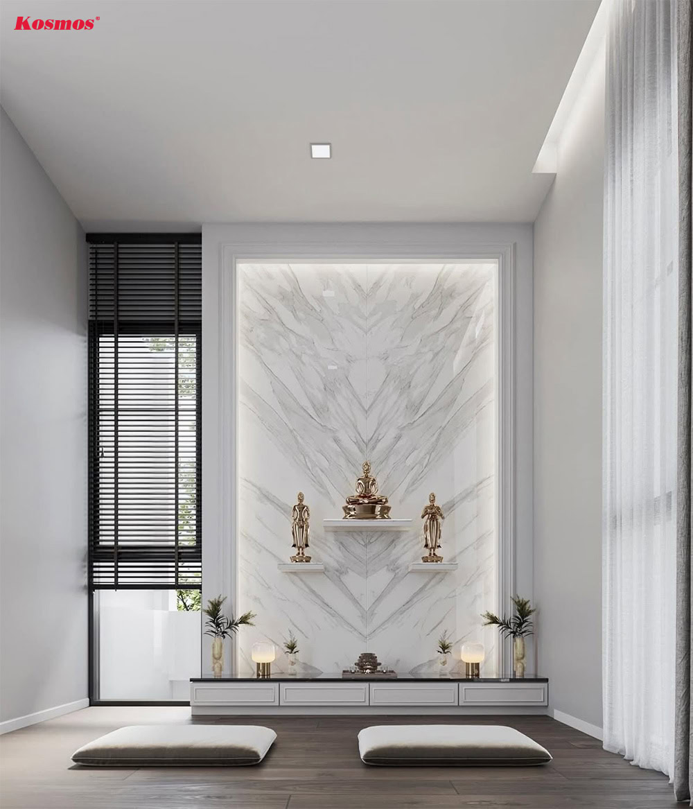 - Giúp không gian thêm ấn tượng: Bề mặt sáng bóng, vân đá liền mạch, tinh tế, phù hợp cho không gian phòng thờ trang nghiêm.