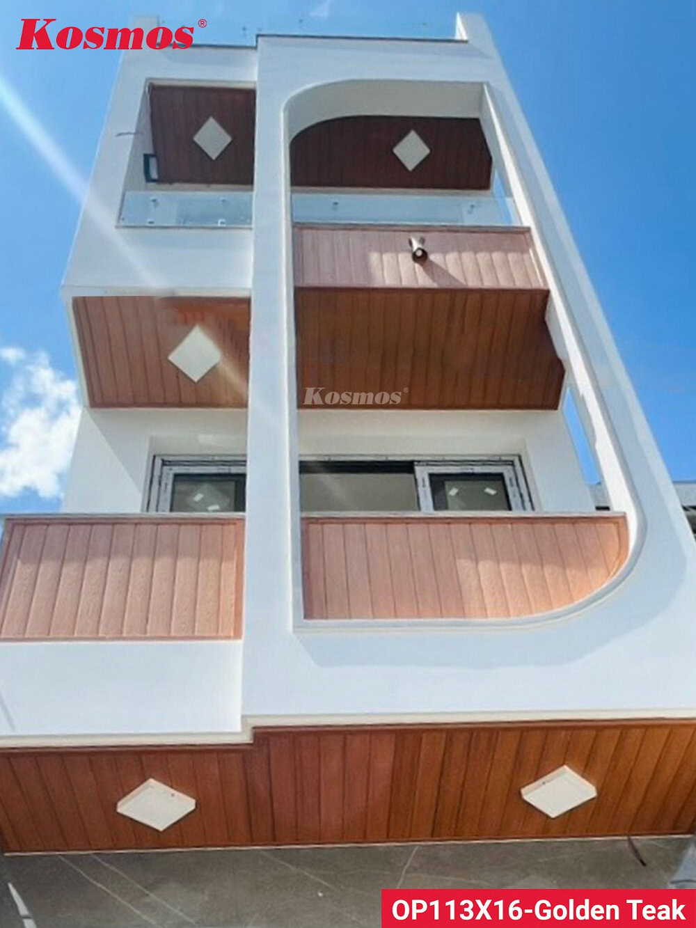 - Vật liệu ngoại thất: Gỗ nhựa ngoài trời, tấm ốp nhựa phủ ASA chịu điều kiện khí hậu khắc nghiệt, phù hợp ban công, sân thượng, mặt tiền và hồ bơi.
