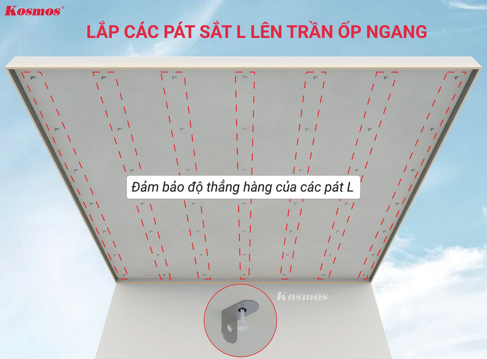 Sau khi pát sắt chữ L đã được cố định chắc chắn lên trần, tiến hành lắp đặt hệ thanh xương theo các bước sau: